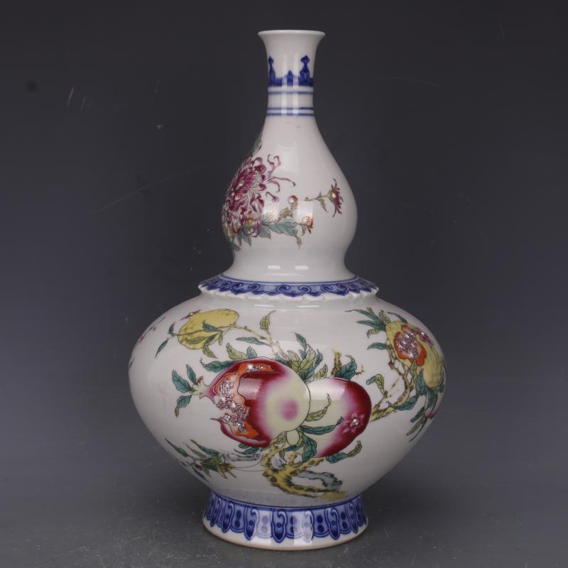 清乾隆青花斗彩福壽三多葫蘆瓶仿古老貨瓷器家居中式擺件古玩收藏1入