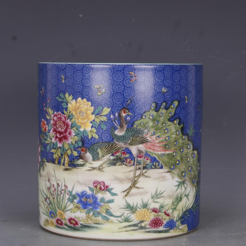 清乾隆掐絲琺瑯彩花鳥筆筒筆海仿古瓷器家居文房中式擺件古玩收藏1入