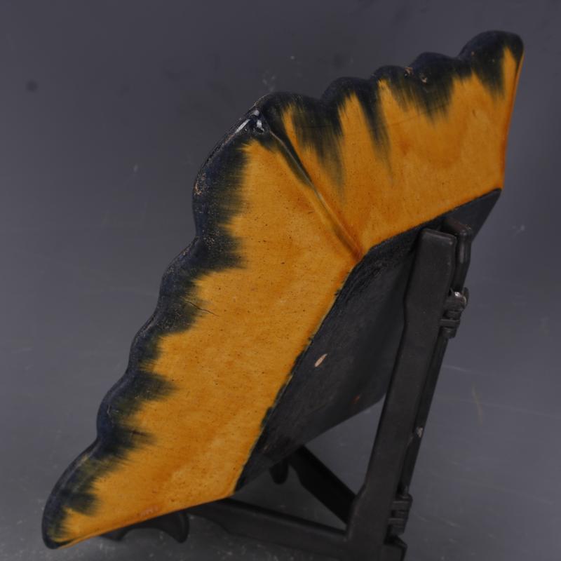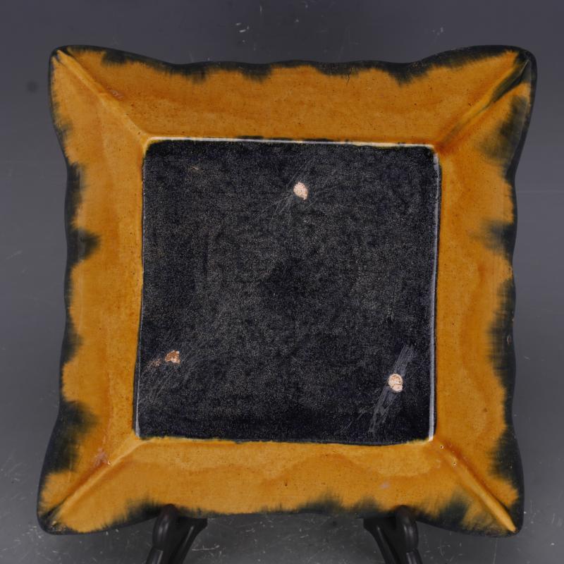 [2]唐代三彩浮雕刻花紋四方盤果碟仿古出土瓷器家居擺件古董古玩收藏1入