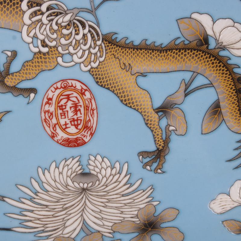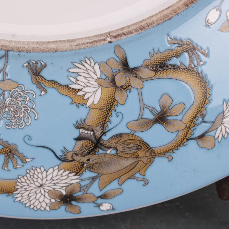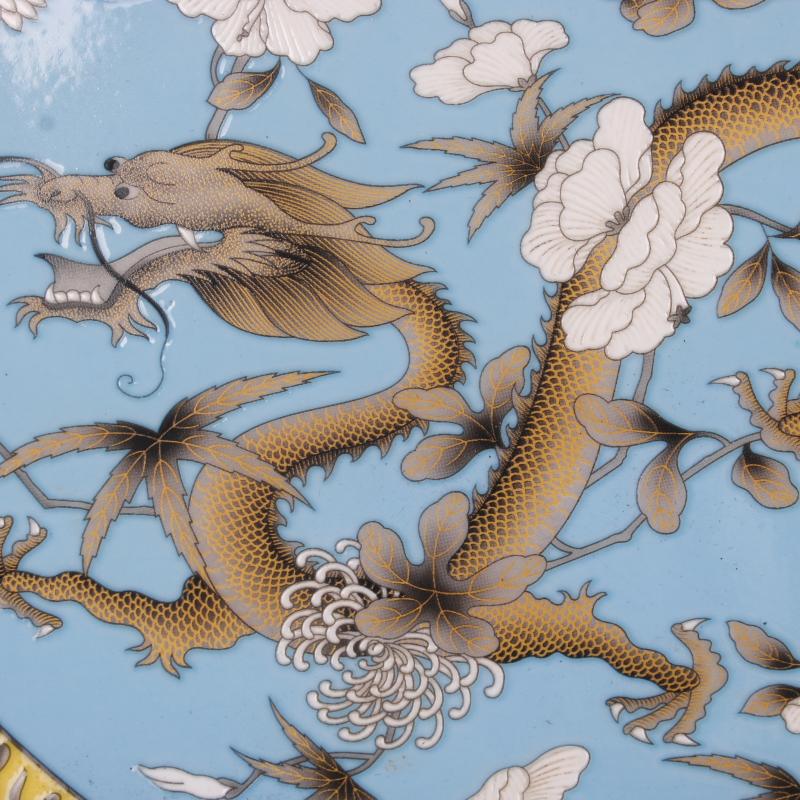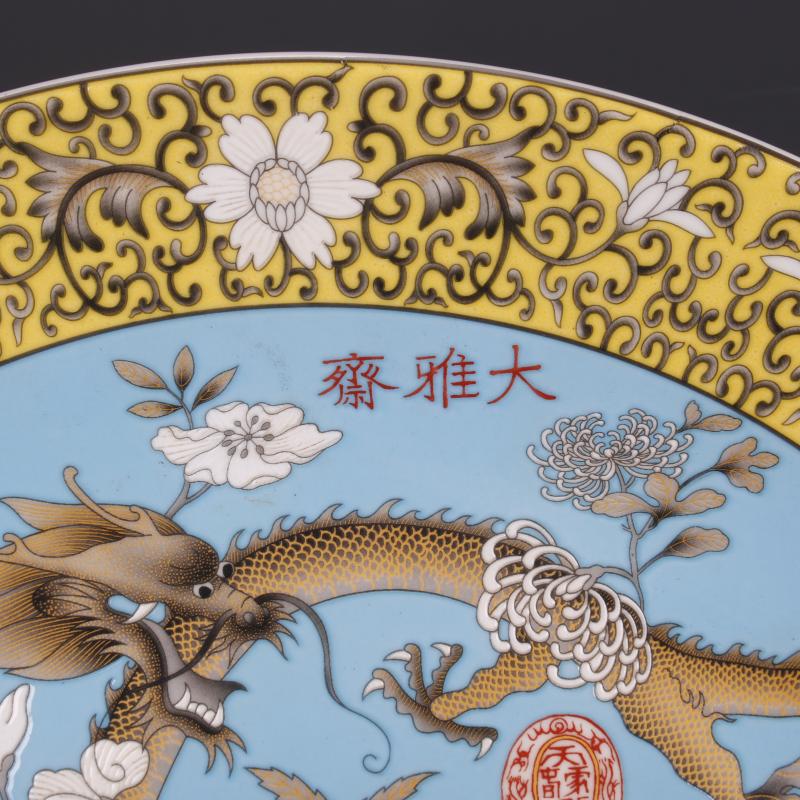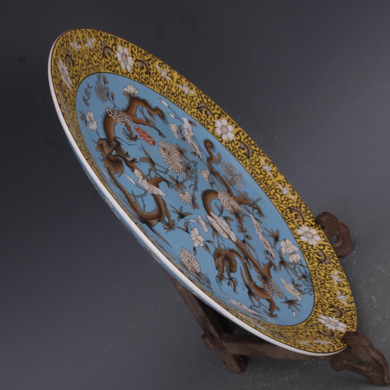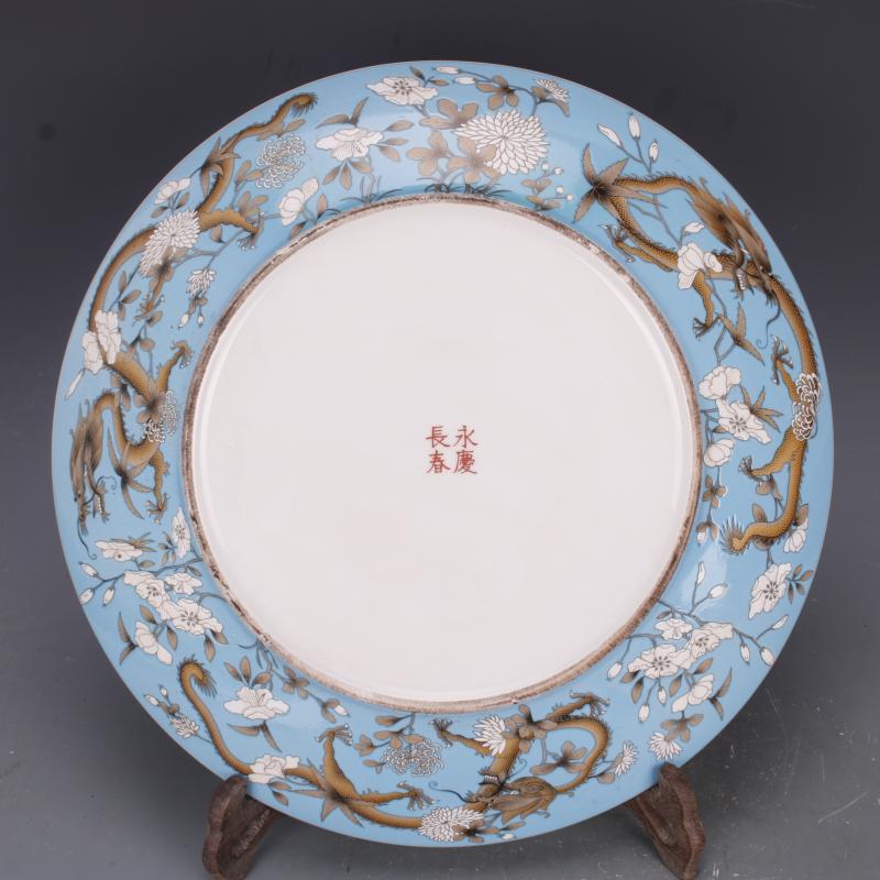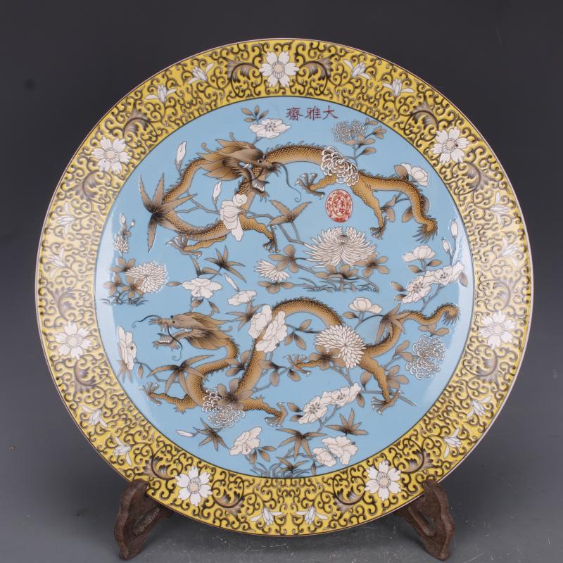 清慈禧時期粉彩穿花龍紋平盤仿古老貨瓷器家居中式擺件古董古玩1入