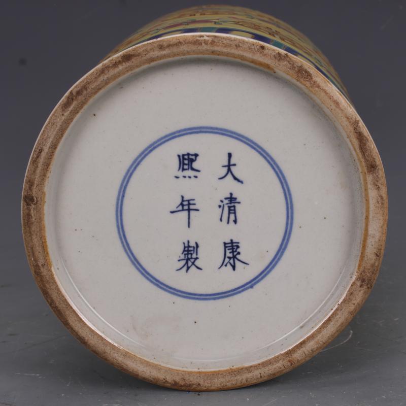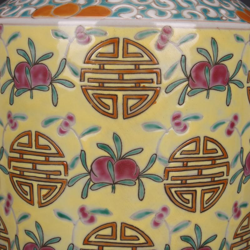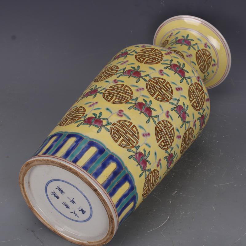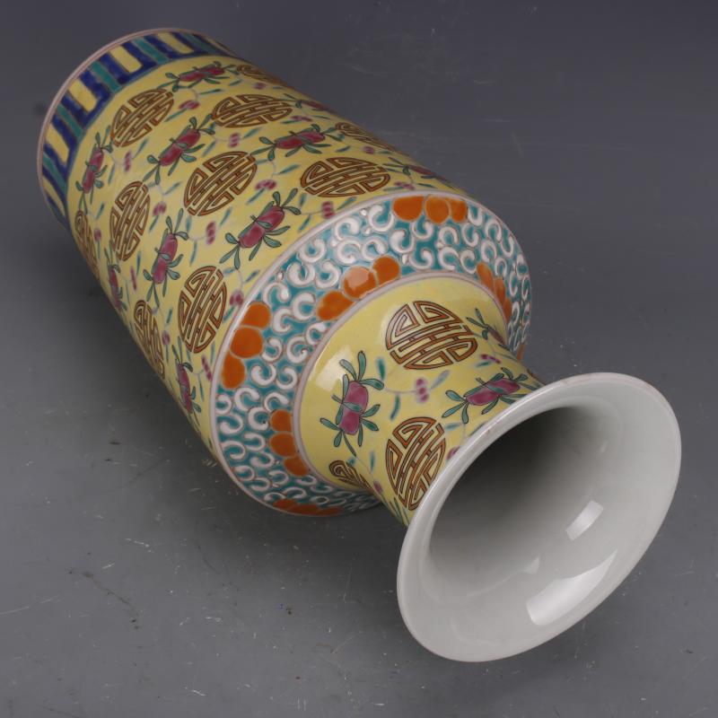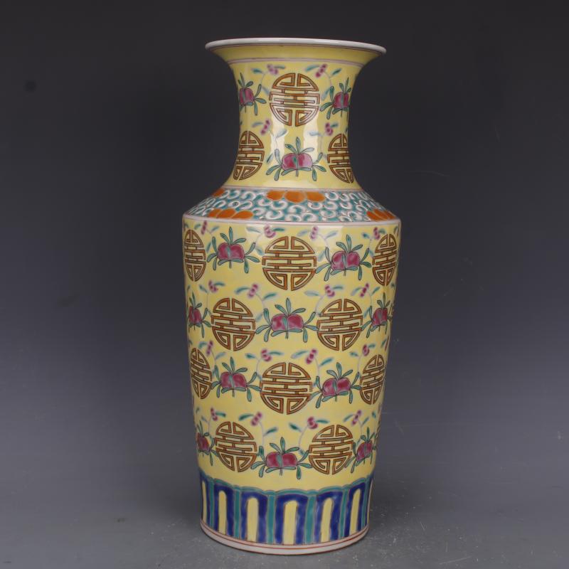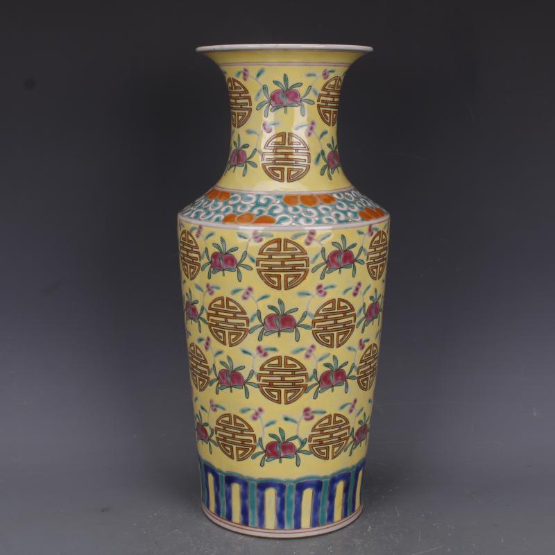 清康熙黃地粉彩福壽方尖瓶手工仿古老貨瓷器家居擺件古董古玩收藏1入