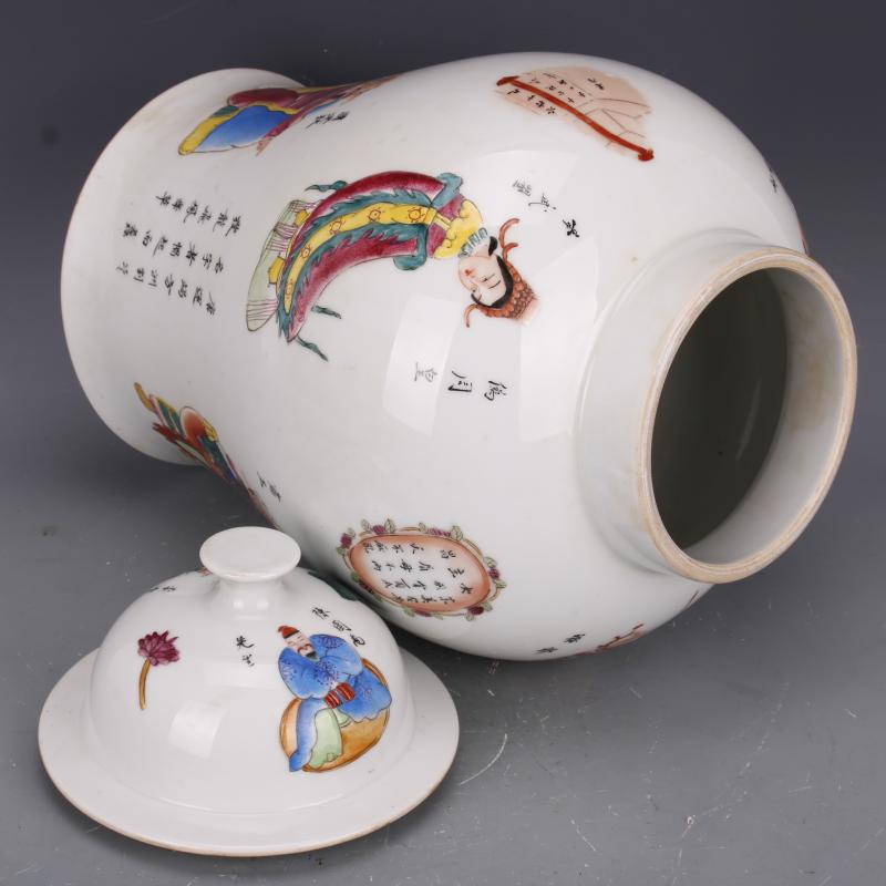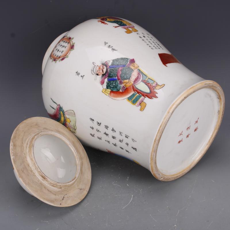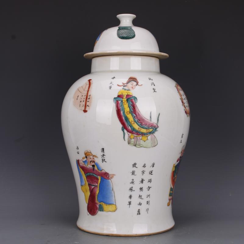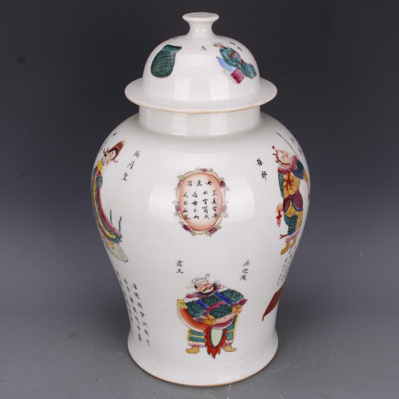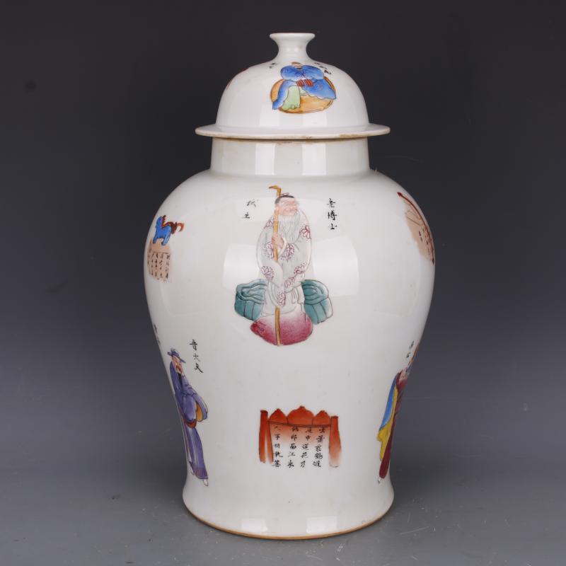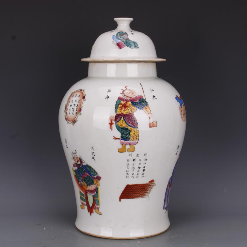 清咸豐粉彩人物紋將軍罐手繪仿古老貨瓷器家居中式老擺件古董古玩1入