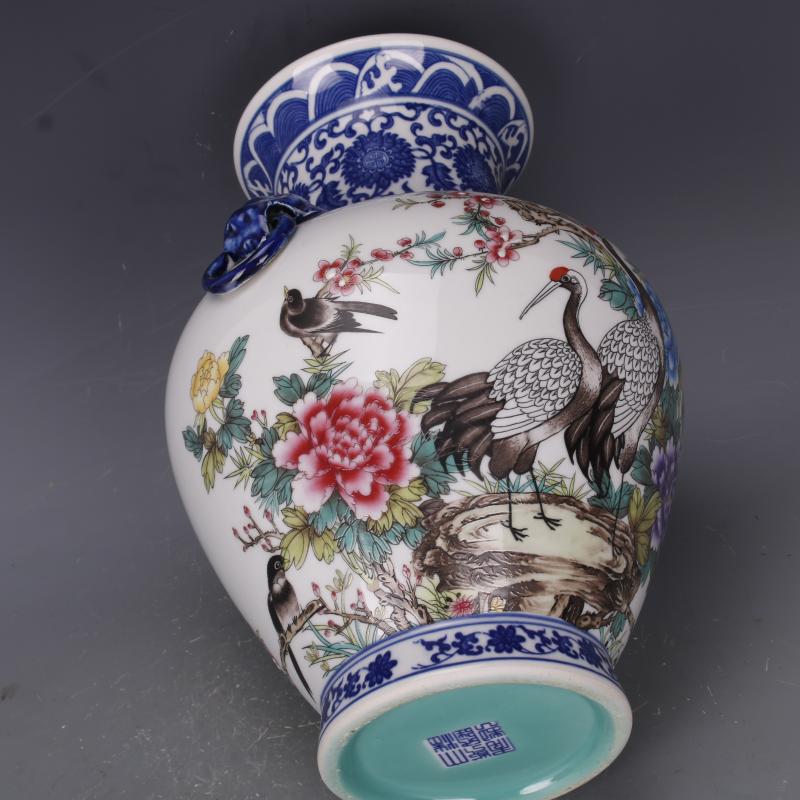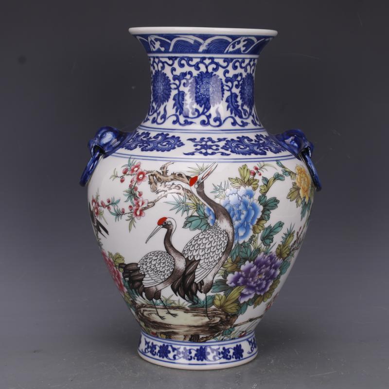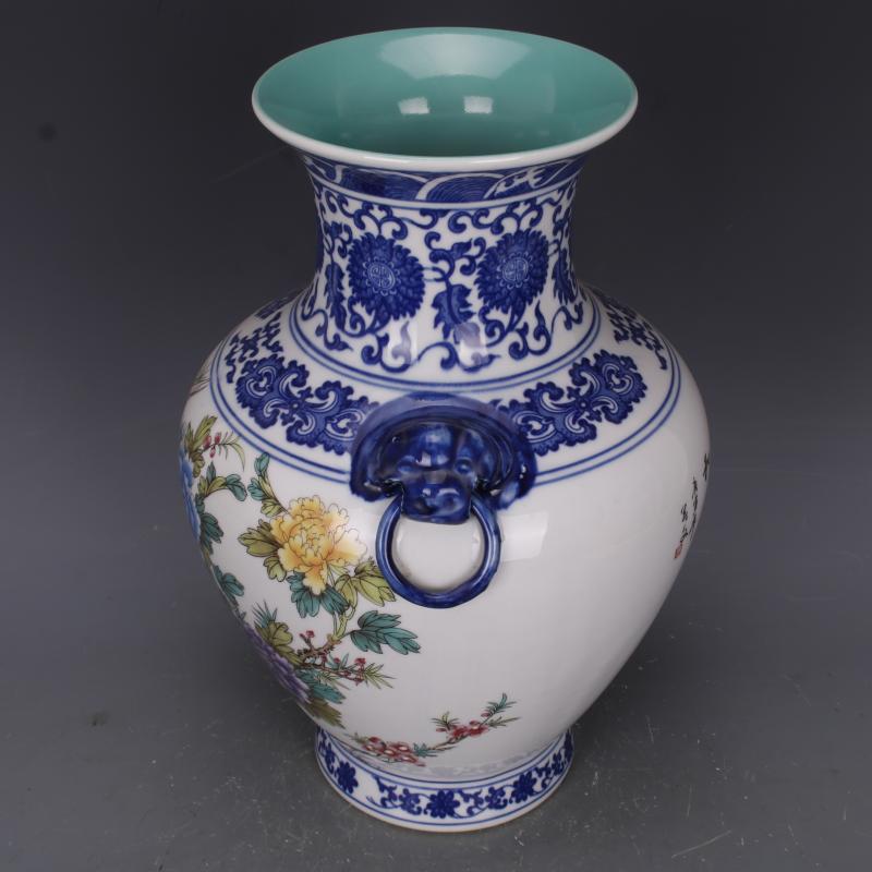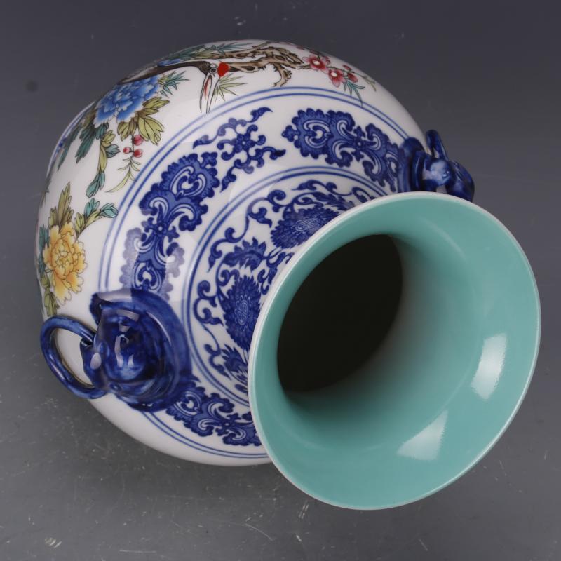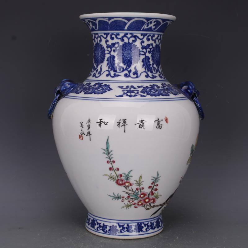 清乾隆青花斗彩富貴花鳥花觚瓶仿古老貨瓷器家居中式擺件古玩收藏1入