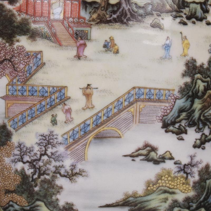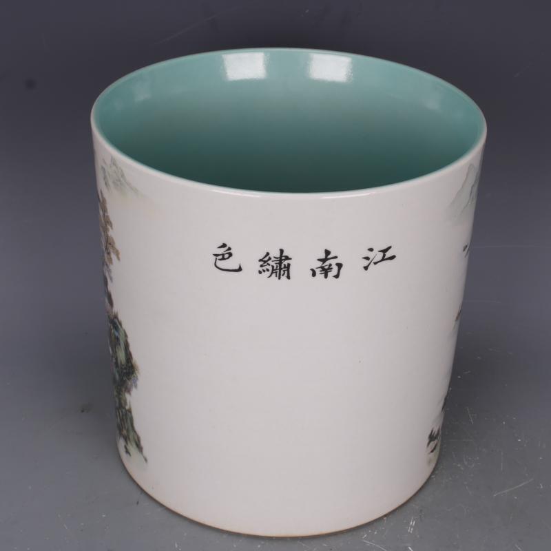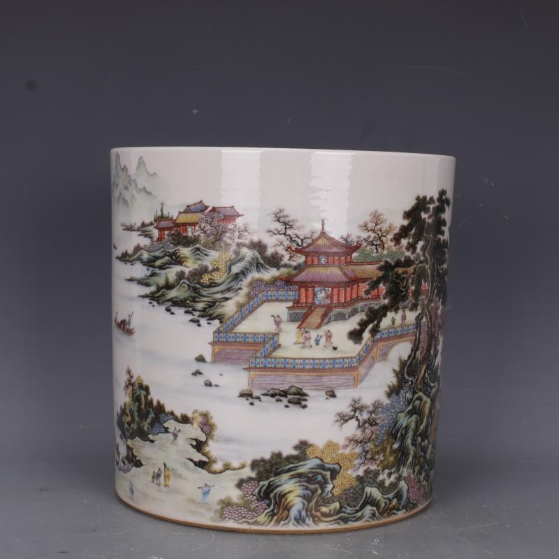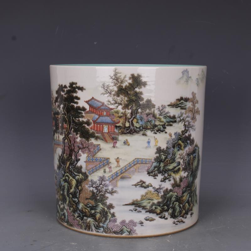 清乾隆粉彩彩山水人物筆筒筆海仿古瓷器家居文房中式擺件古玩收藏1入