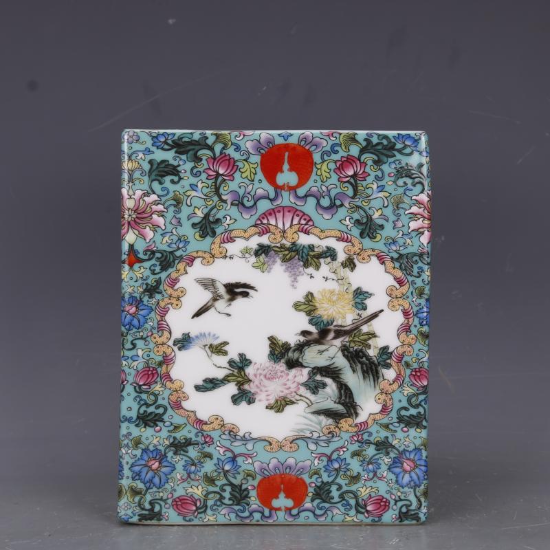 清乾隆琺瑯彩四季花鳥四方筆筒仿古瓷器家居文房中式擺件古玩收藏1入