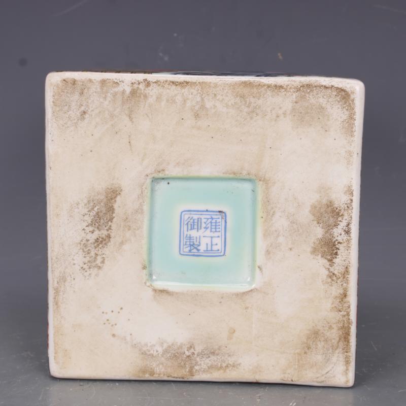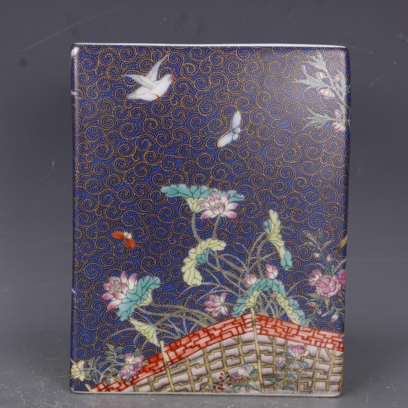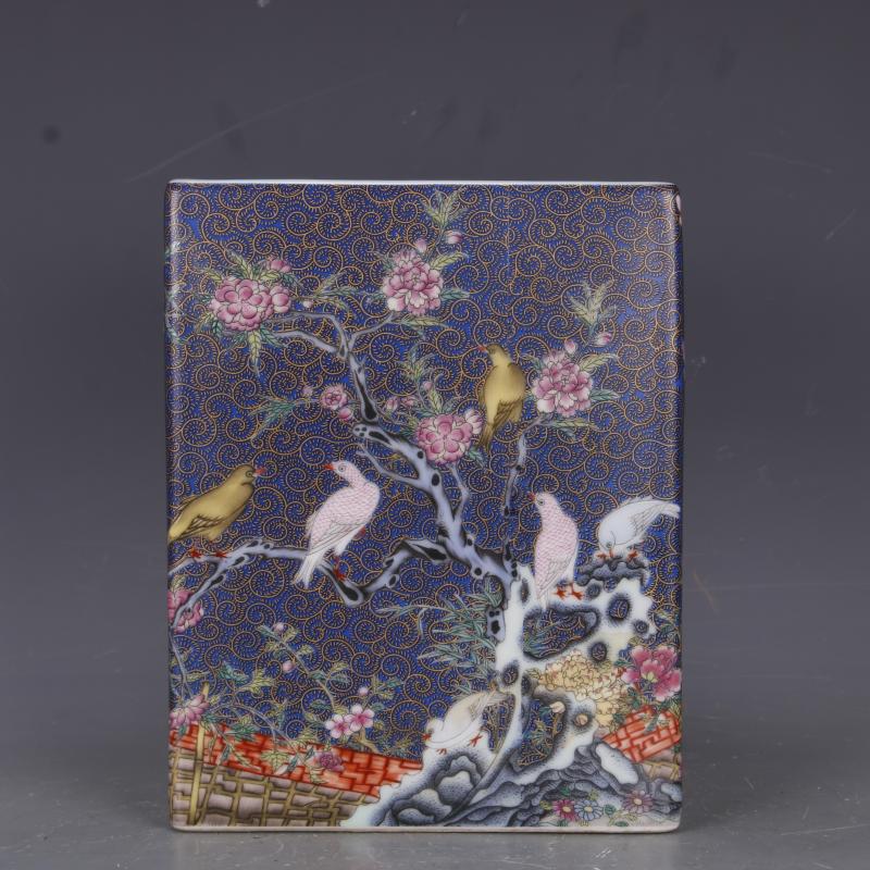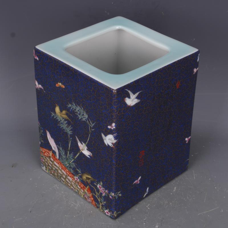 清乾隆刻花琺瑯彩花鳥四方筆筒仿古瓷器家居文房中式擺件古玩收藏1入