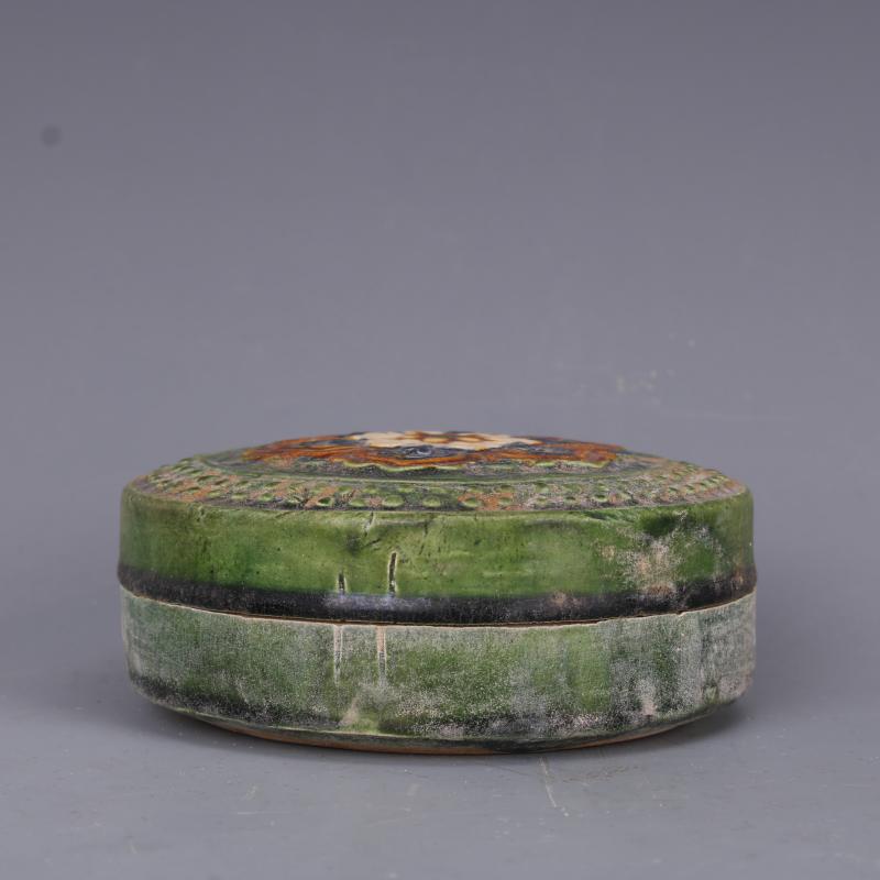 唐三彩浮雕刻花紋印尼盒仿古老貨瓷器家居擺件古董古玩收藏擺件1入