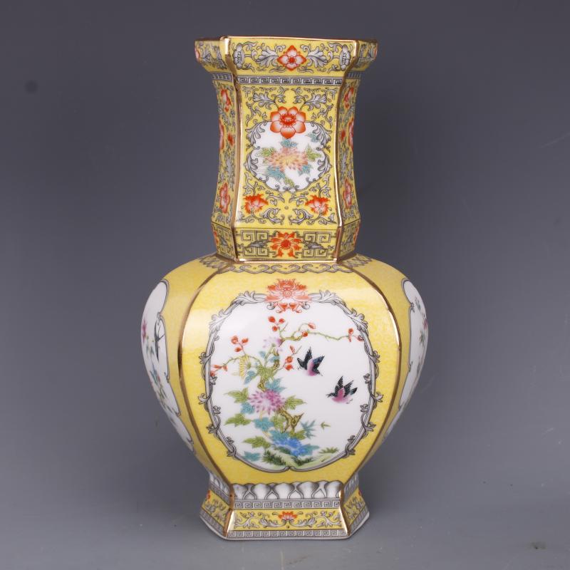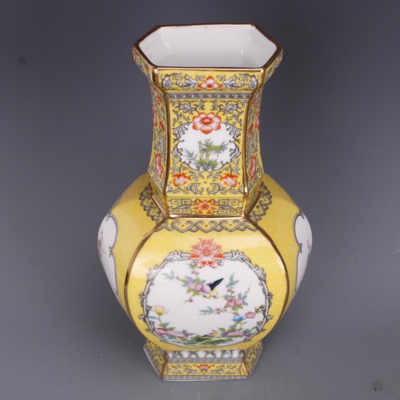 [2]清乾隆琺瑯彩花鳥紋大肚瓶仿古老貨瓷器家居中式裝飾擺件古董古玩1入