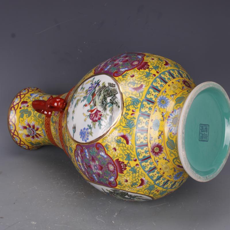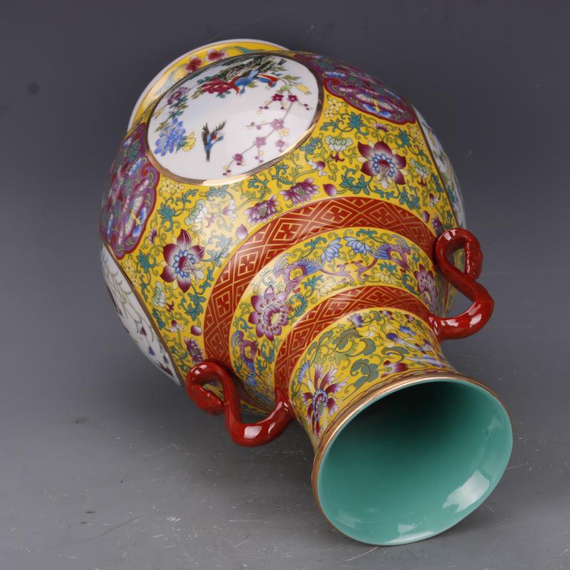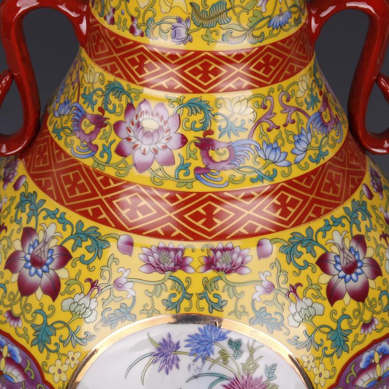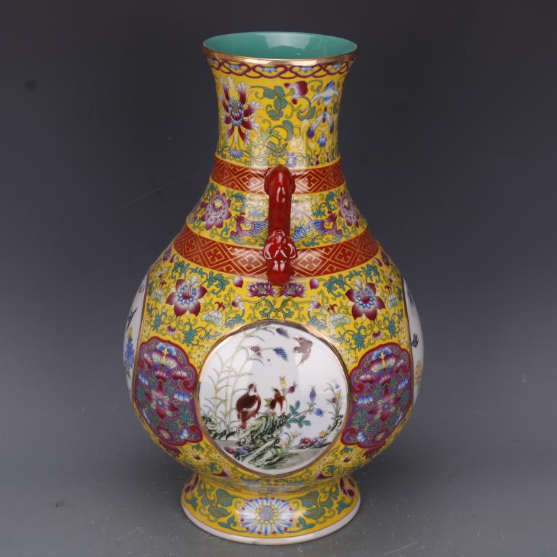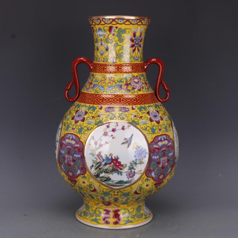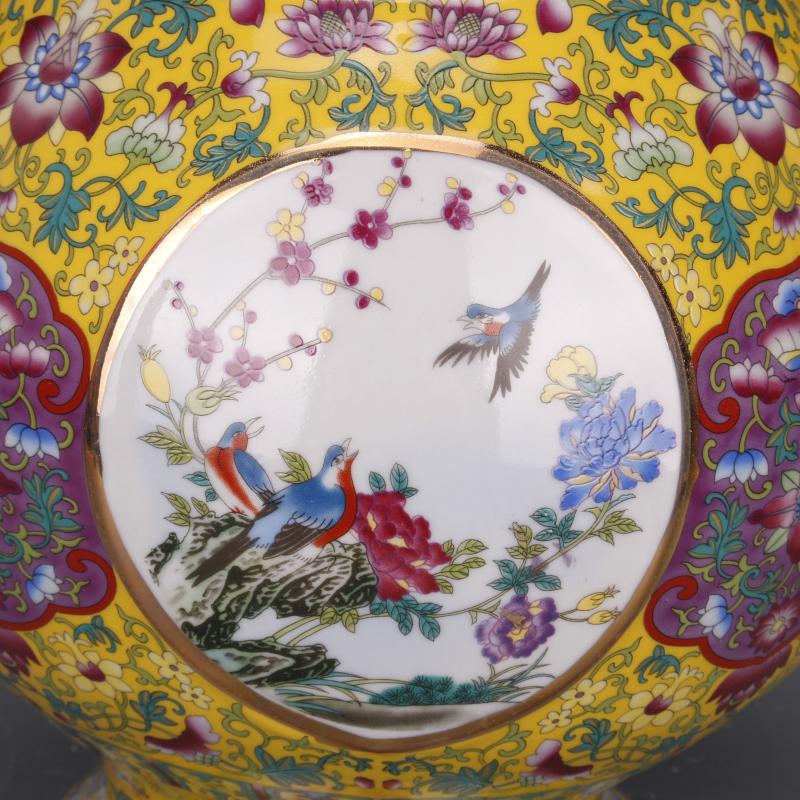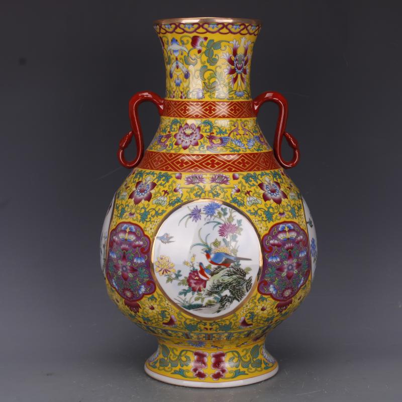 清乾隆描金琺瑯彩花鳥如意福筒瓶仿古工藝品瓷器家居中式擺件古玩1入