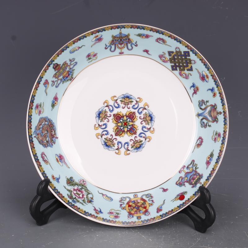 [2]清乾隆粉彩八寶花紋盤仿古工藝品家居博古中式擺件古董古玩收藏1入
