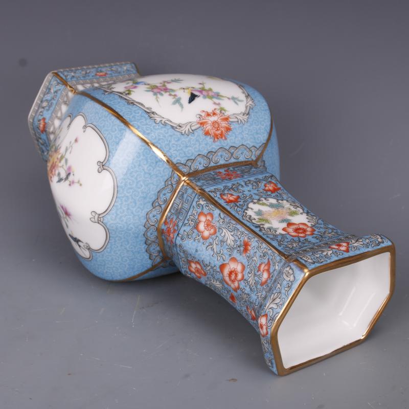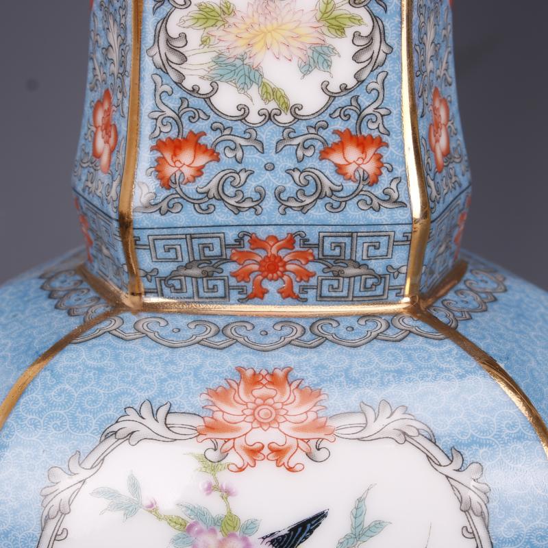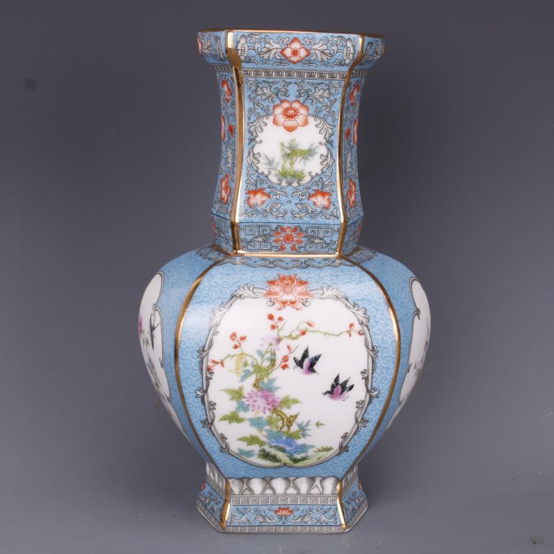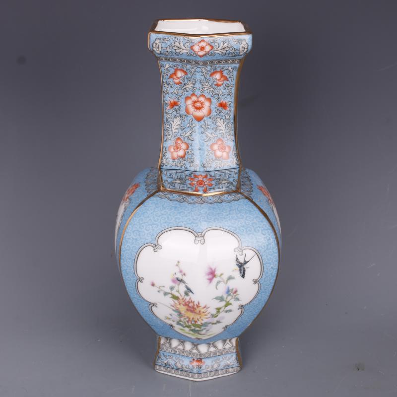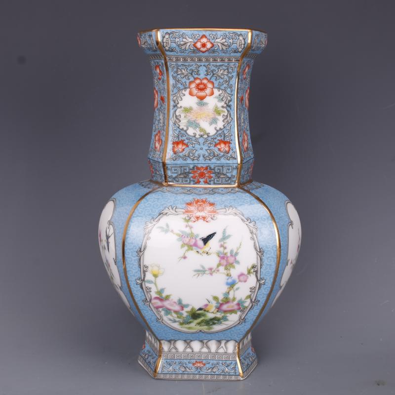 清乾隆琺瑯彩花鳥紋大肚瓶仿古老貨瓷器家居中式裝飾擺件古董古玩1入