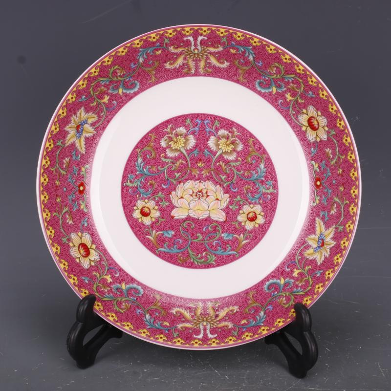 清乾隆粉彩紅底花紋盤仿古工藝品家居博古中式擺件古董古玩收藏1入