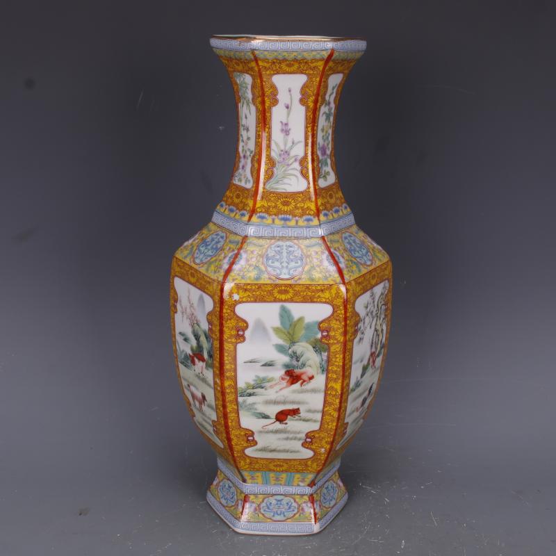 [2]清乾隆描金琺瑯彩十二生肖六方瓶仿古工藝瓷器家居中式古玩擺件61入