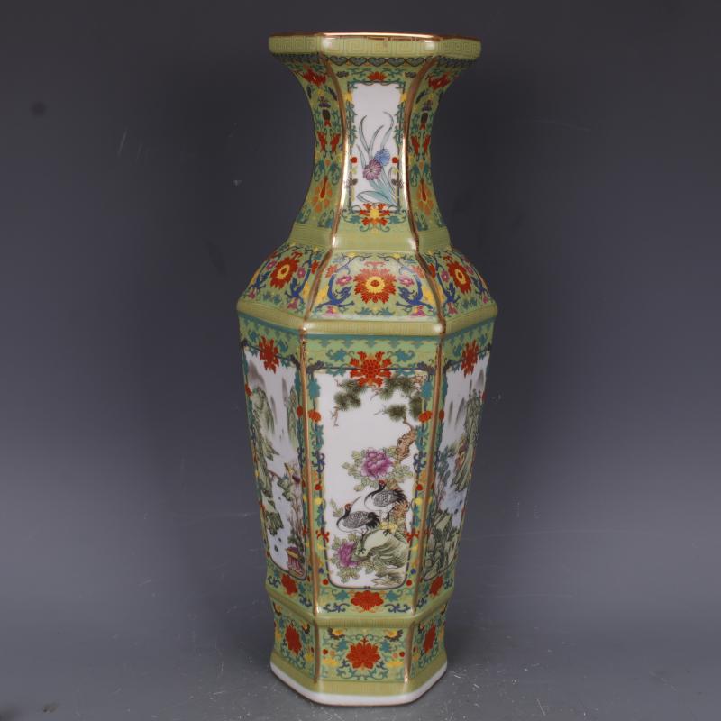 清乾隆描金琺瑯彩花鳥六方瓶仿古工藝瓷器家居中式古董古玩擺件61入