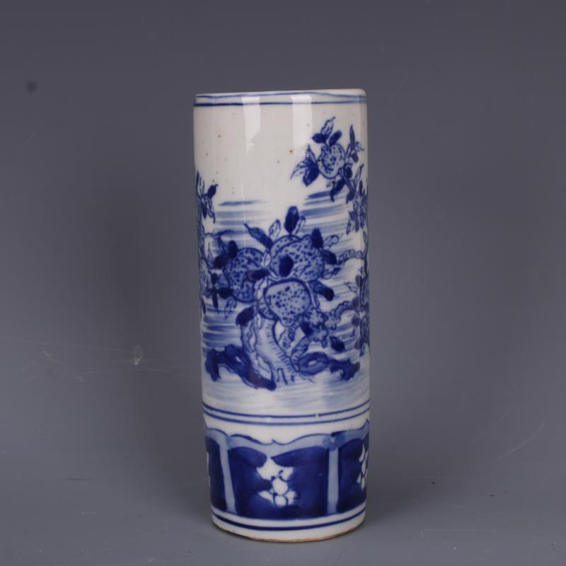 清乾隆青花壽桃紋筆筒仿古工藝中式文房擺件古董古玩老貨瓷器收藏1入