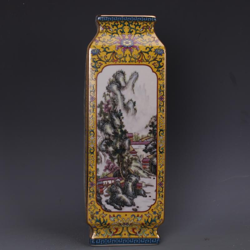 清乾隆描金琺瑯彩山水文字紋四方瓶仿古瓷器家居擺件古董古玩收藏1入