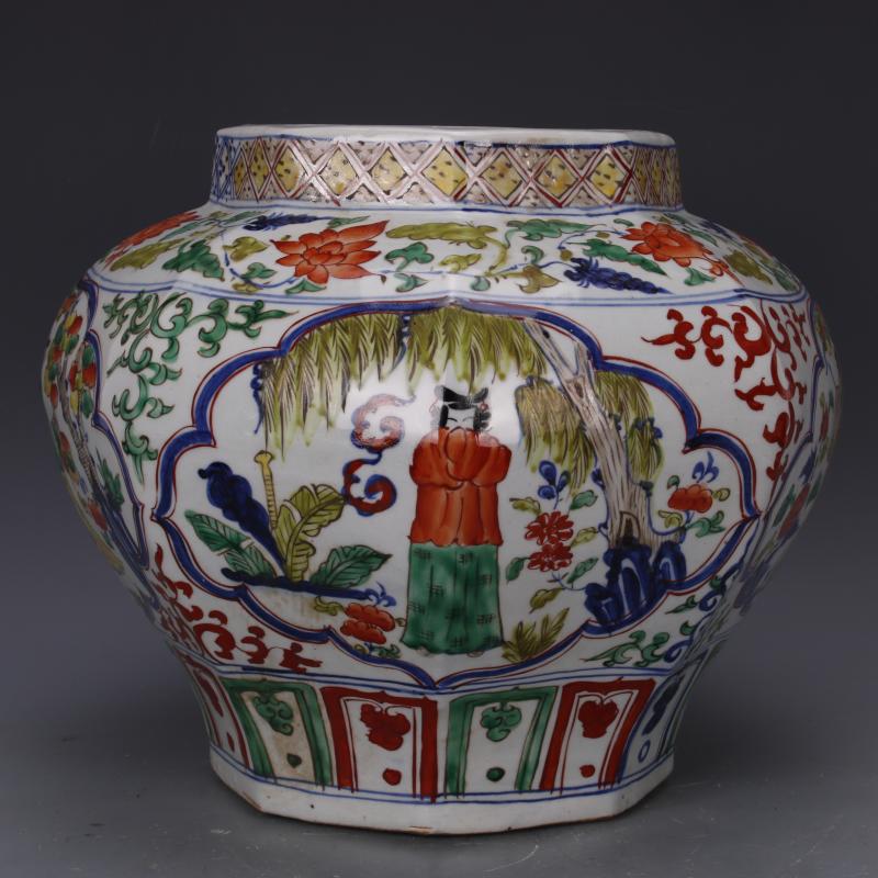 元青花五彩人物罐仿古老貨包老瓷器家居中式擺件古董古玩博古收藏1入