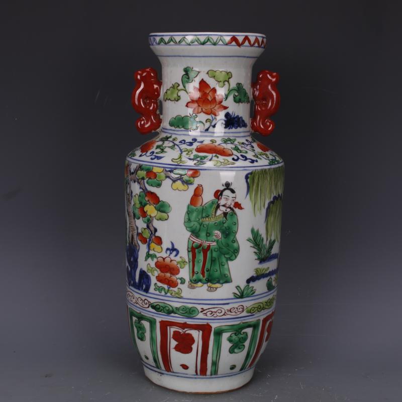 元青花五彩人物棒槌瓶手繪仿古老貨包老瓷器中式擺件古董古玩收藏1入