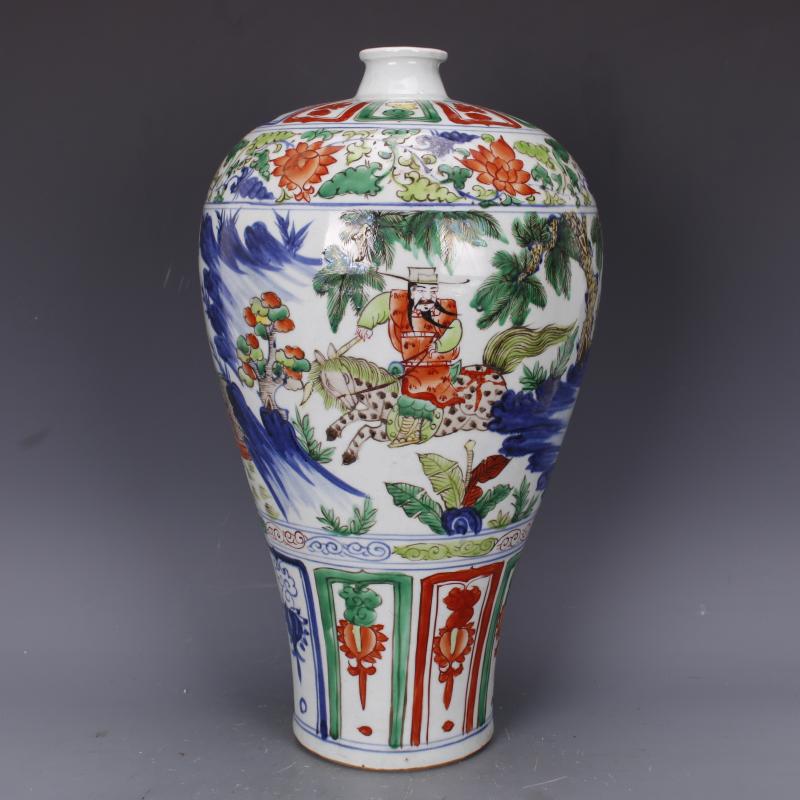 [7]元青花五彩人物梅瓶手繪仿古老貨包老瓷器中式擺件古董古玩收藏1入