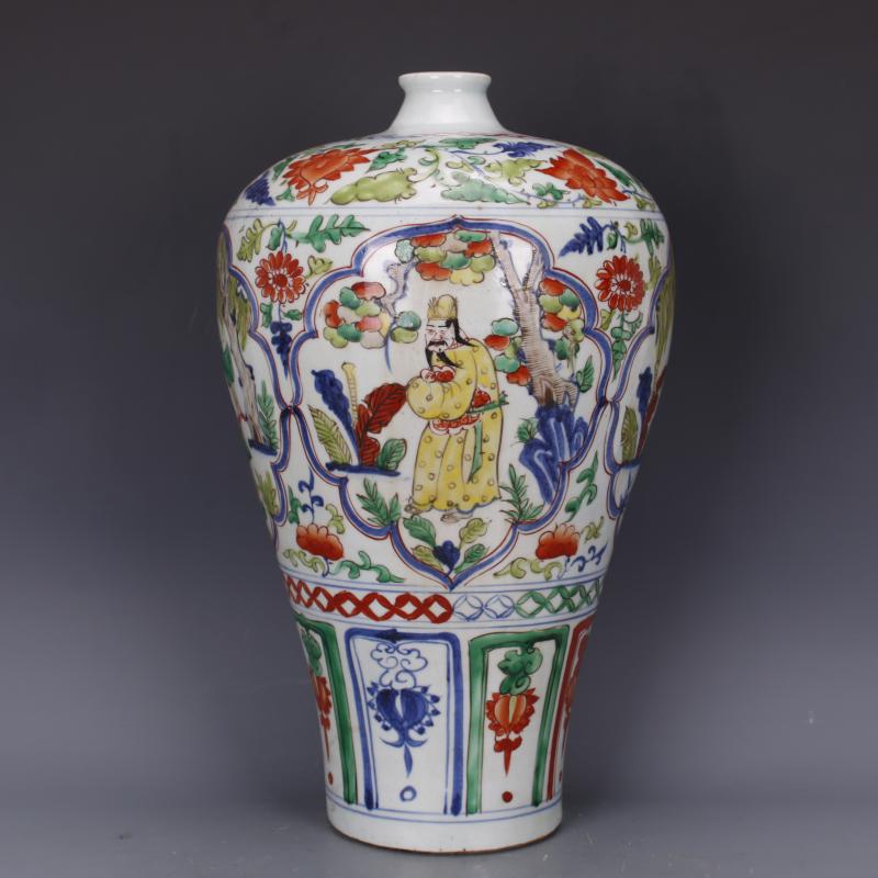 元青花五彩人物梅瓶仿古老貨瓷器家居中式裝飾擺件古董古玩收藏1入