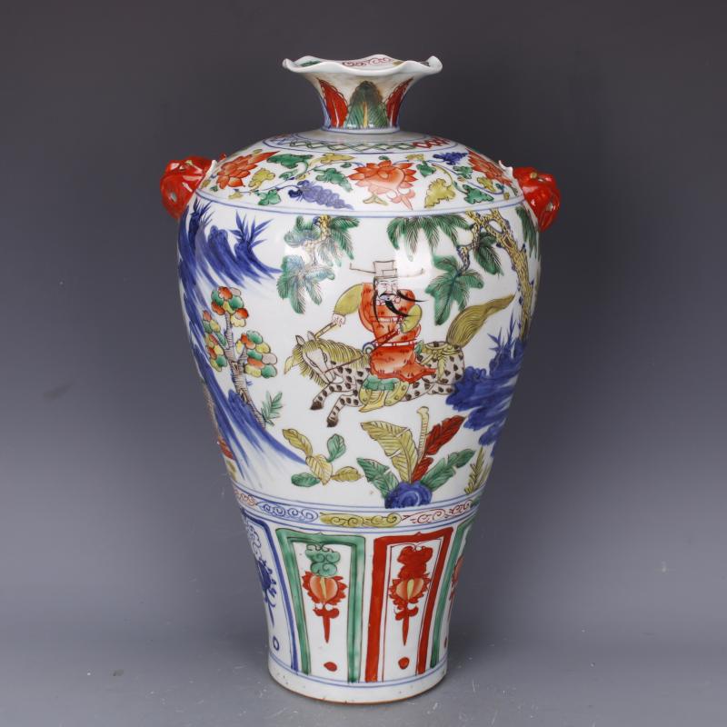 元青花五彩人物蕭何月下追韓信梅瓶仿古老貨包老瓷器中式擺件古玩1入