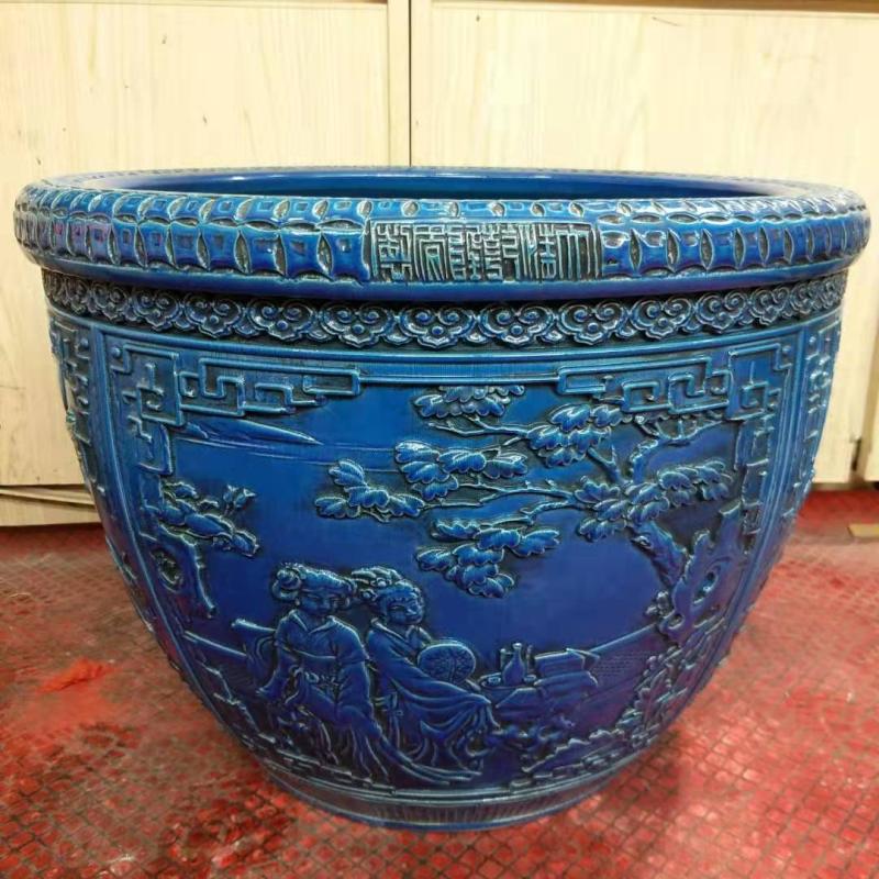 清乾隆雕刻人物大缸手工仿古景德鎮老貨瓷器中式擺件古董古玩收藏1入