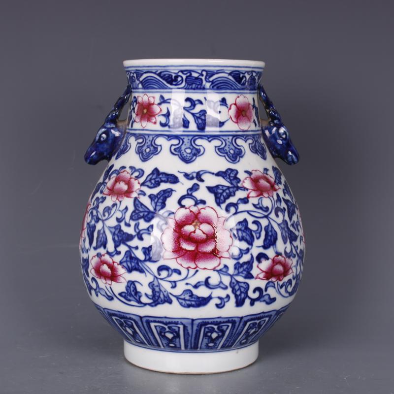 清乾隆青花斗彩纏枝蓮紋鹿頭尊福筒手繪仿古中式家居瓷器古玩擺件1入