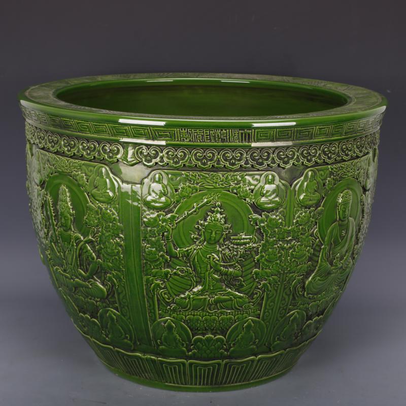 清乾隆雕刻西方人物大缸手工仿古景德鎮老貨瓷器中式擺件古董古玩1入