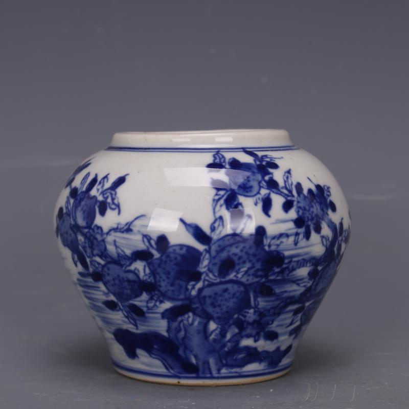 清乾隆青花壽桃紋文房水洗手繪仿古工藝瓷器家居中式擺件古董古玩1入