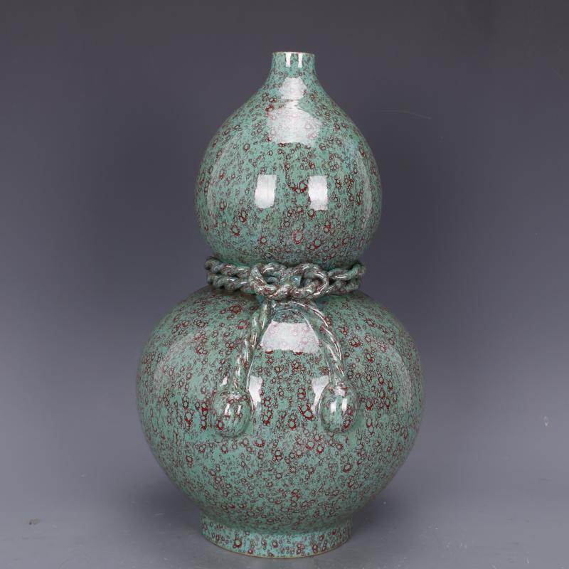 清乾隆爐鈞釉腰帶葫蘆瓶手工仿古中式家居擺件瓷器古董古玩收藏1入