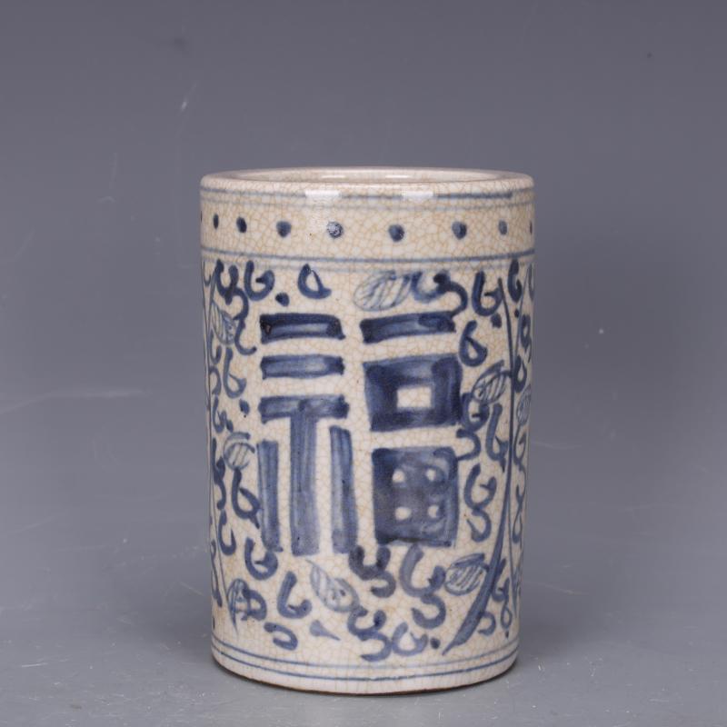 清嘉靖青花福字紋筆筒仿古老貨瓷器家居中式博古文房擺件古董古玩1入