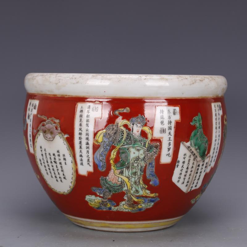 清康熙粉彩人物香爐缸仿古中式瓷器家居博古擺件古董古玩老貨收藏1入