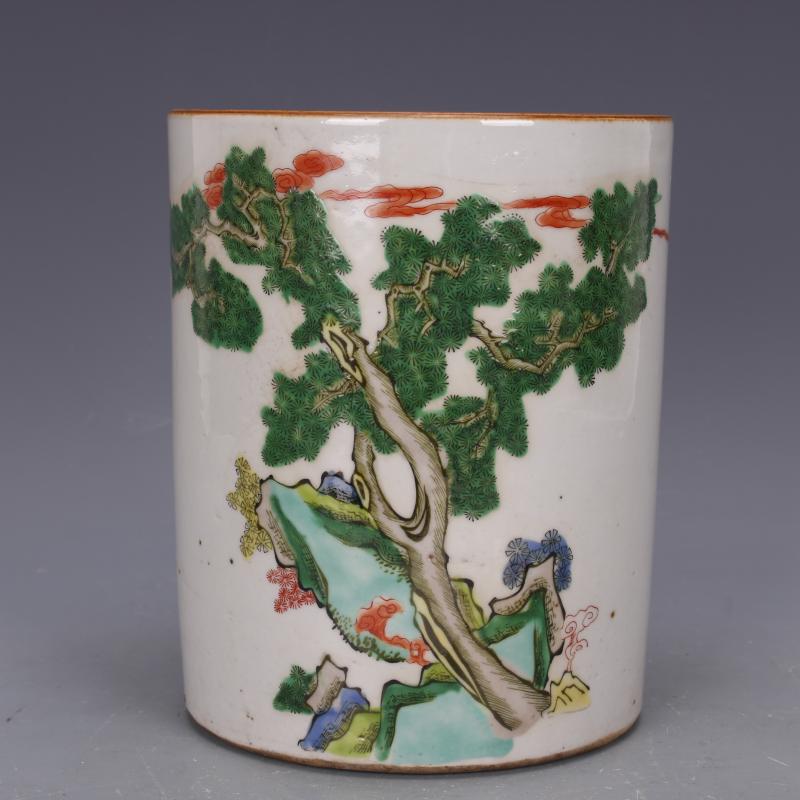 清康熙古彩人物筆筒香爐仿古中式文房瓷器家居擺件古董古玩收藏1入