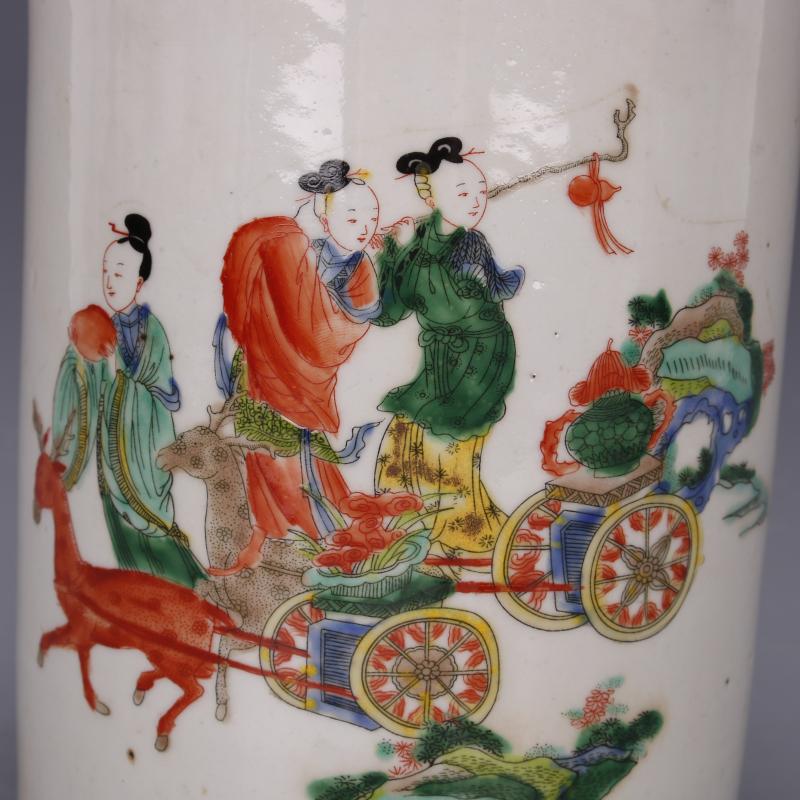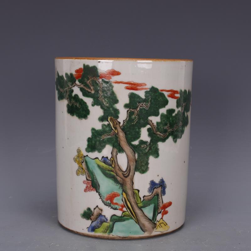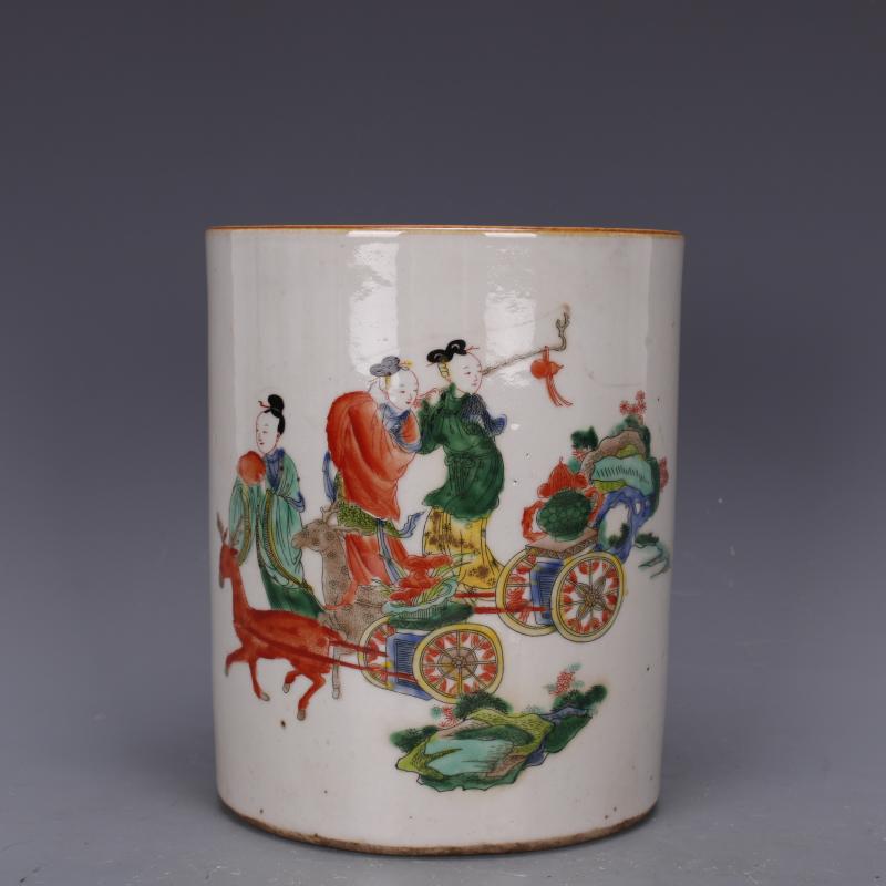 清康熙古彩人物筆筒香爐仿古中式文房瓷器家居擺件古董古玩收藏1入