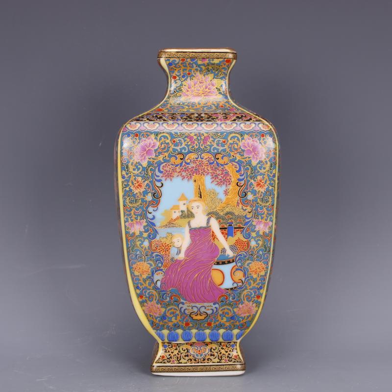 清雍正琺瑯彩西洋人物四方瓶仿古中式瓷器家居博古擺件古董古玩1入