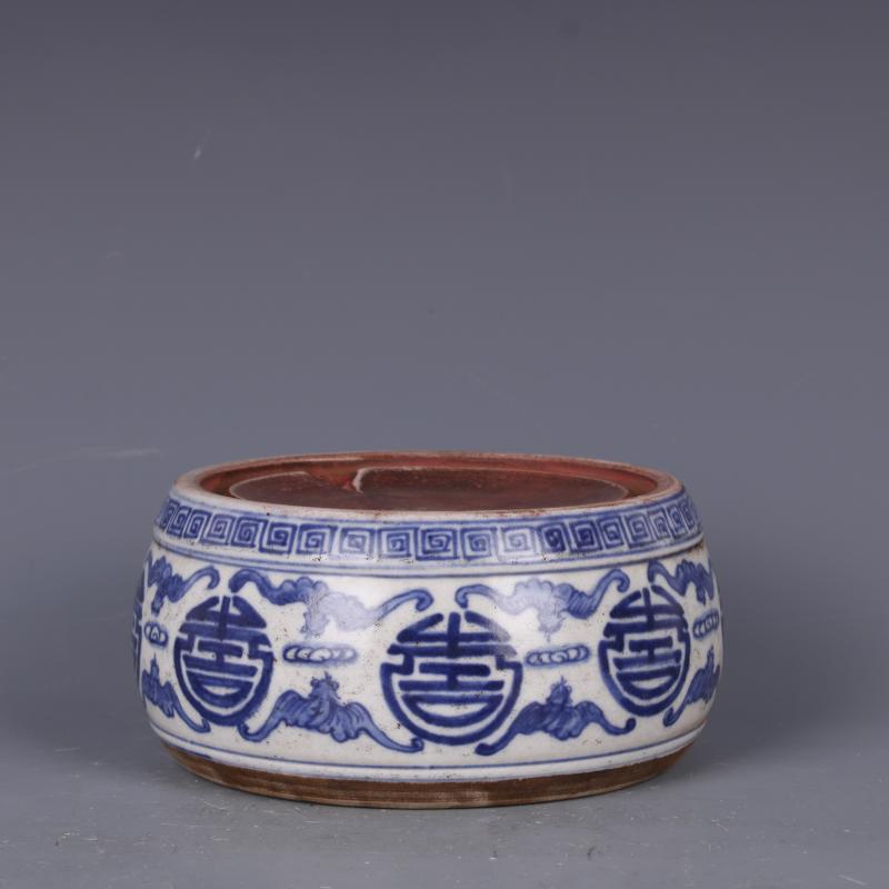 清康熙青花福壽文房硯臺手繪仿古老貨瓷器家居文房擺件古董古玩1入
