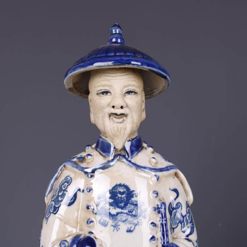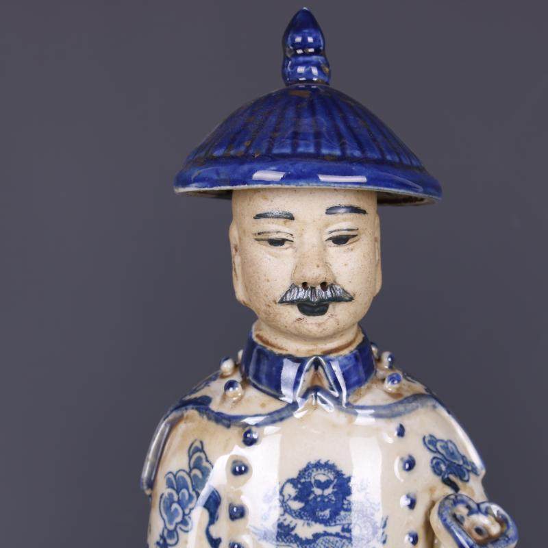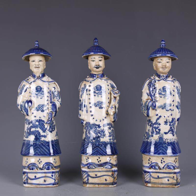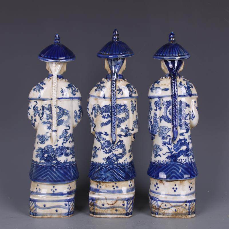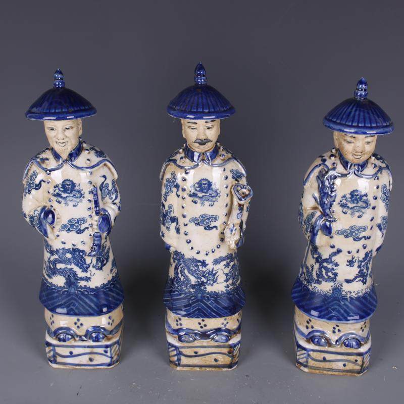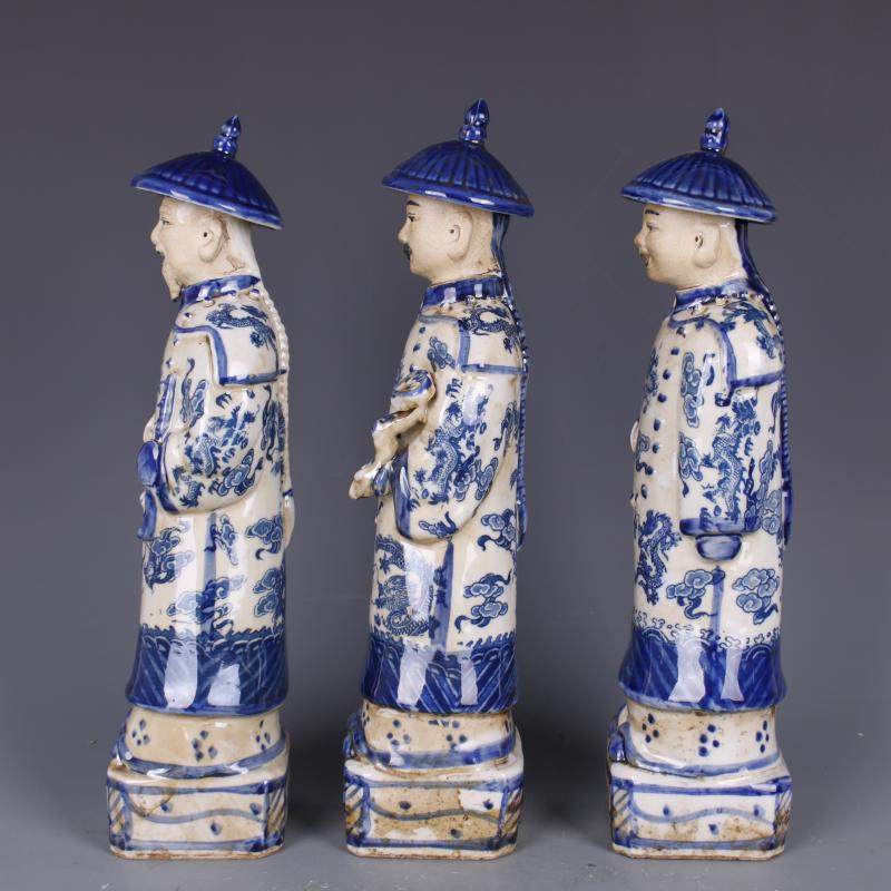 民國青花浮雕三代皇帝物像仿古老貨包老瓷器家居裝飾擺件古董古玩1入