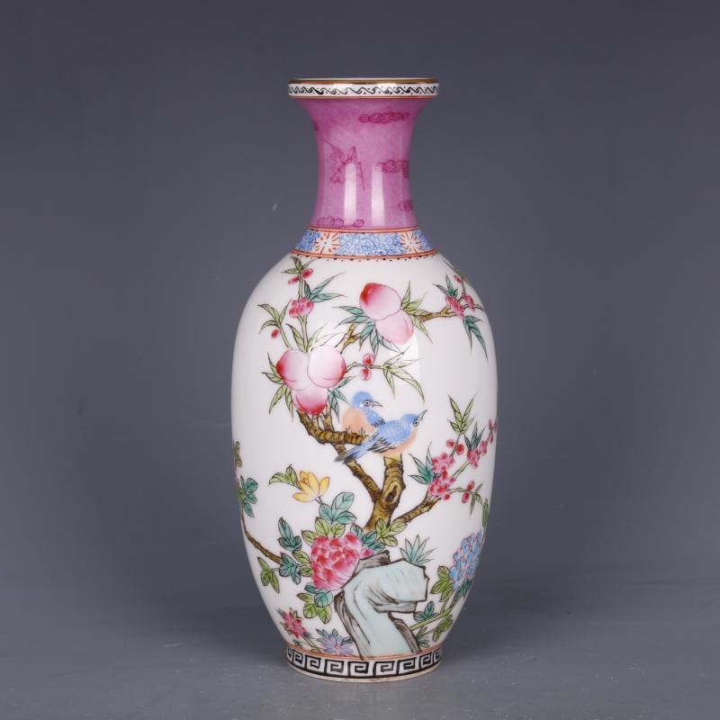 清雍正粉彩描真金福壽花鳥魚尾瓶手繪仿古工藝品瓷器家居裝飾擺件1入