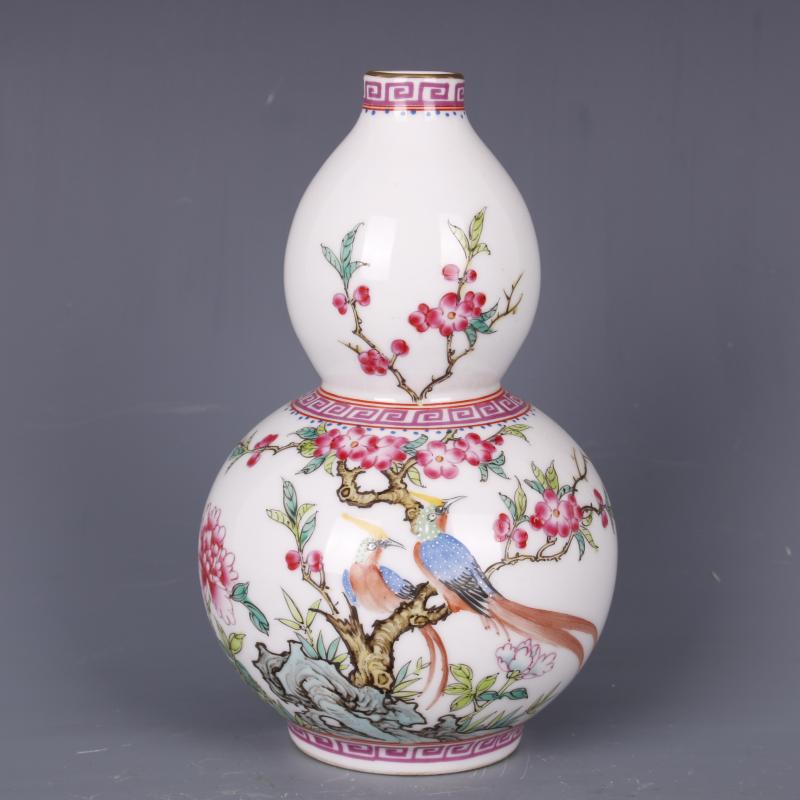 清乾隆粉彩喜上眉梢葫蘆瓶家居裝飾瓷器擺件古董古玩老貨博古收藏1入