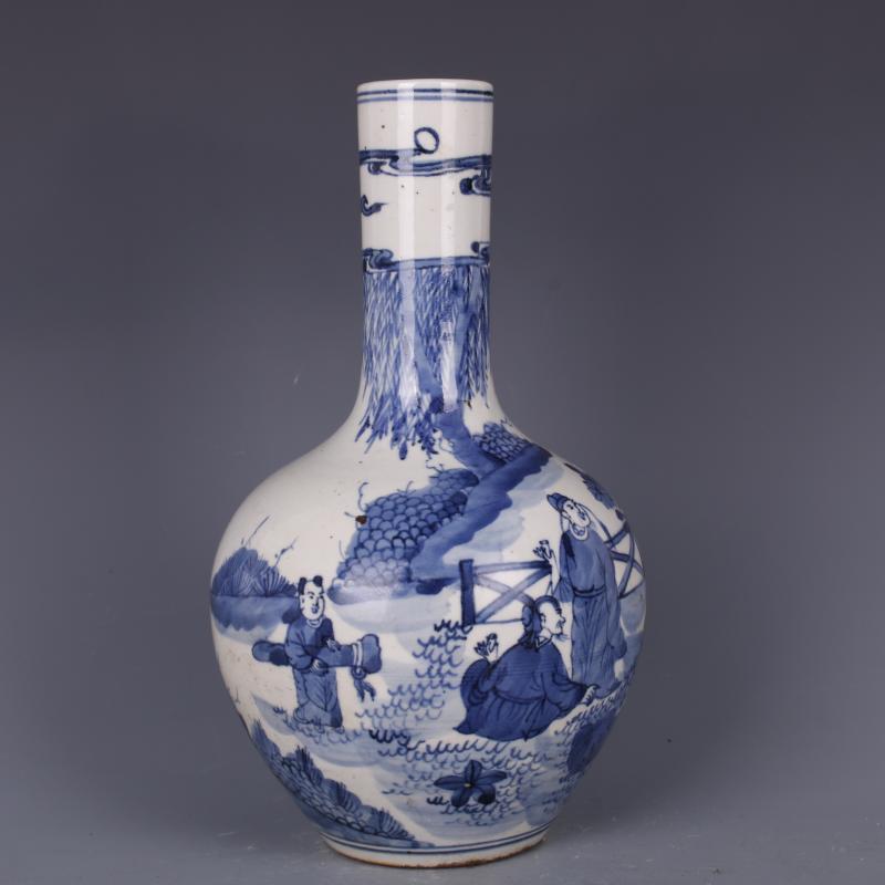 清乾隆青花人物天球瓶手繪仿古老貨瓷器家居裝飾擺件古董古玩收藏1入