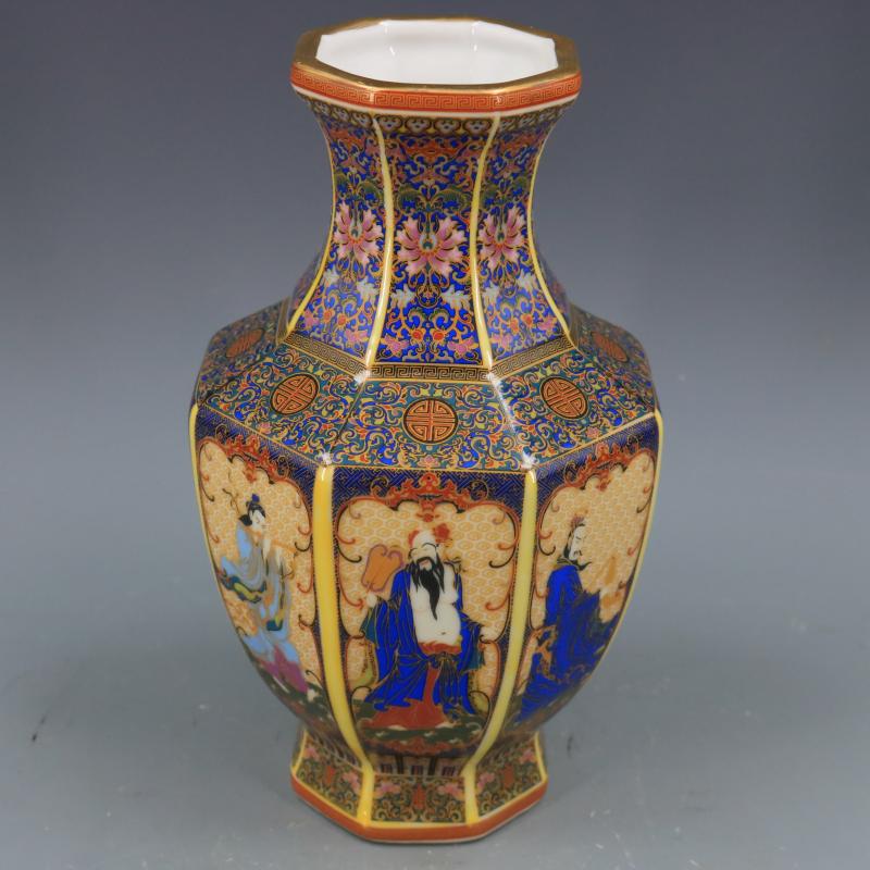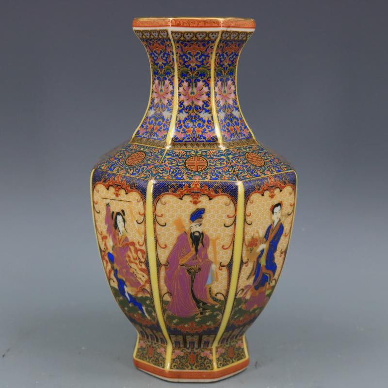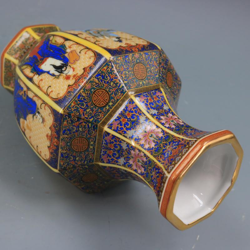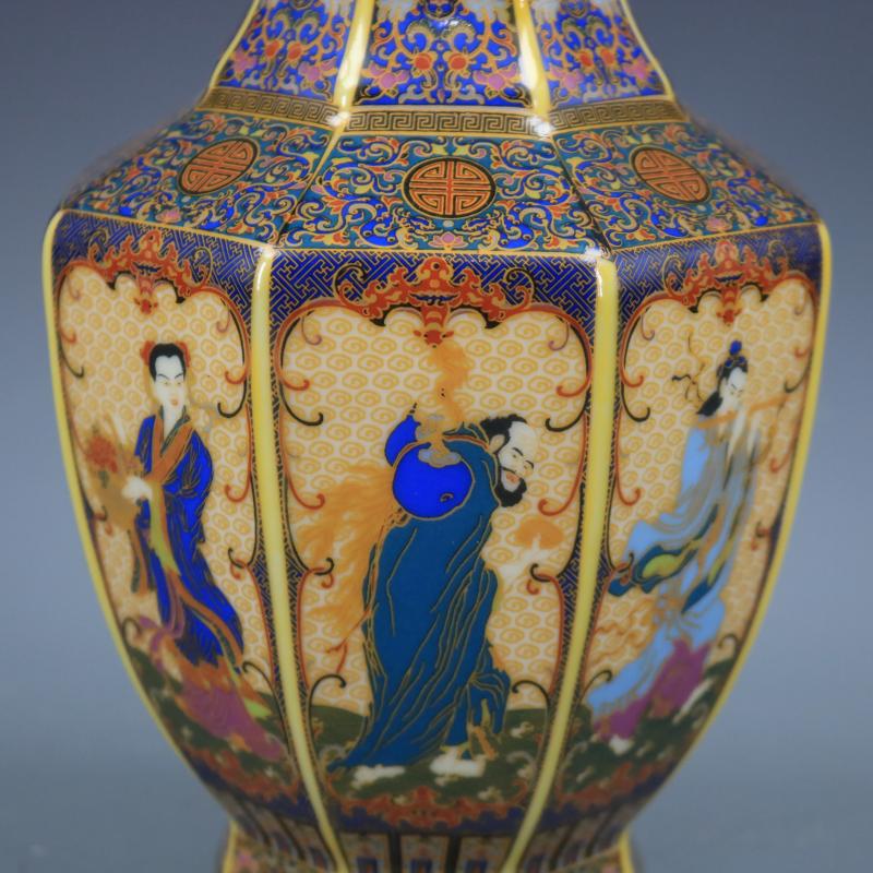 清雍正琺瑯彩八仙人物八方賞瓶仿古工藝品家居擺件古董古玩收藏1入