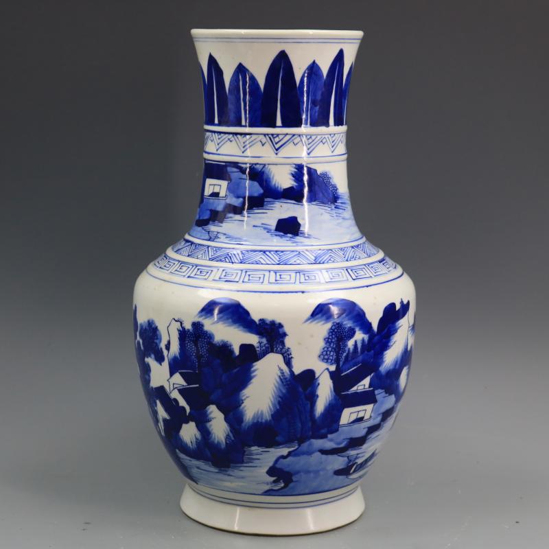 清康熙青花山水紋觀音瓶仿古景德鎮民窯青花瓷器古董古玩擺件收藏1入