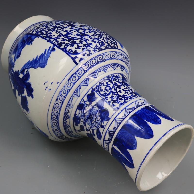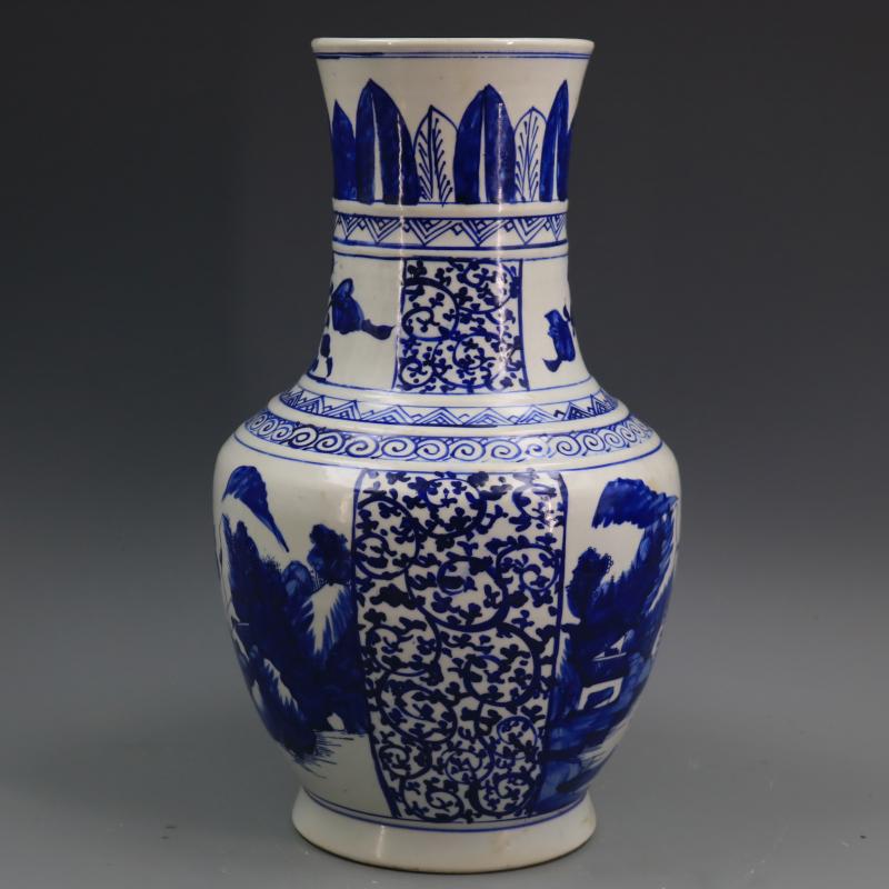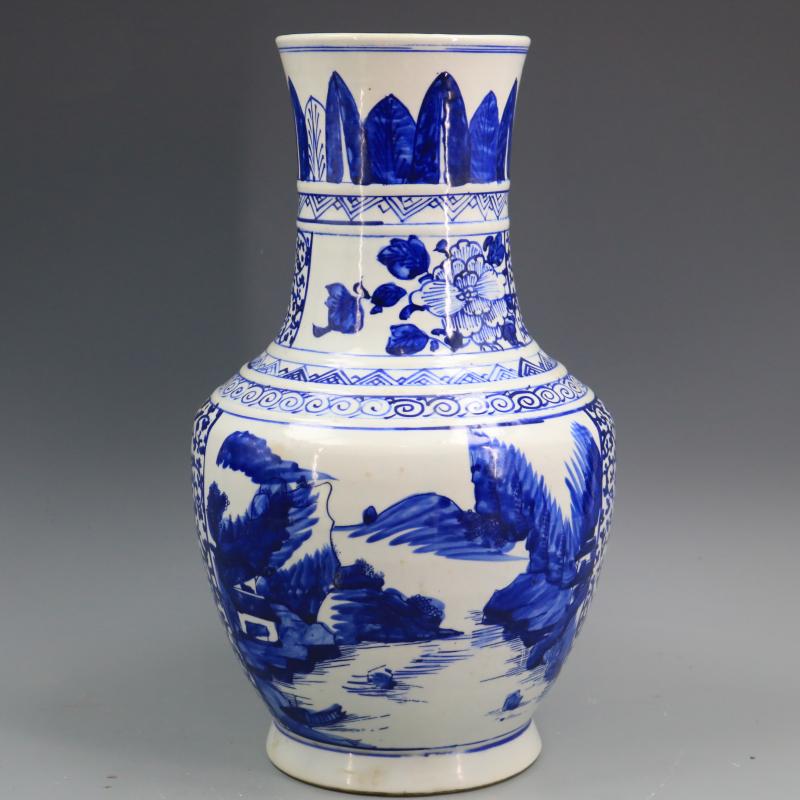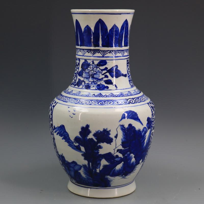 清康熙開光山水紋觀音瓶仿古景德鎮民窯青花瓷器古董古玩擺件收藏1入