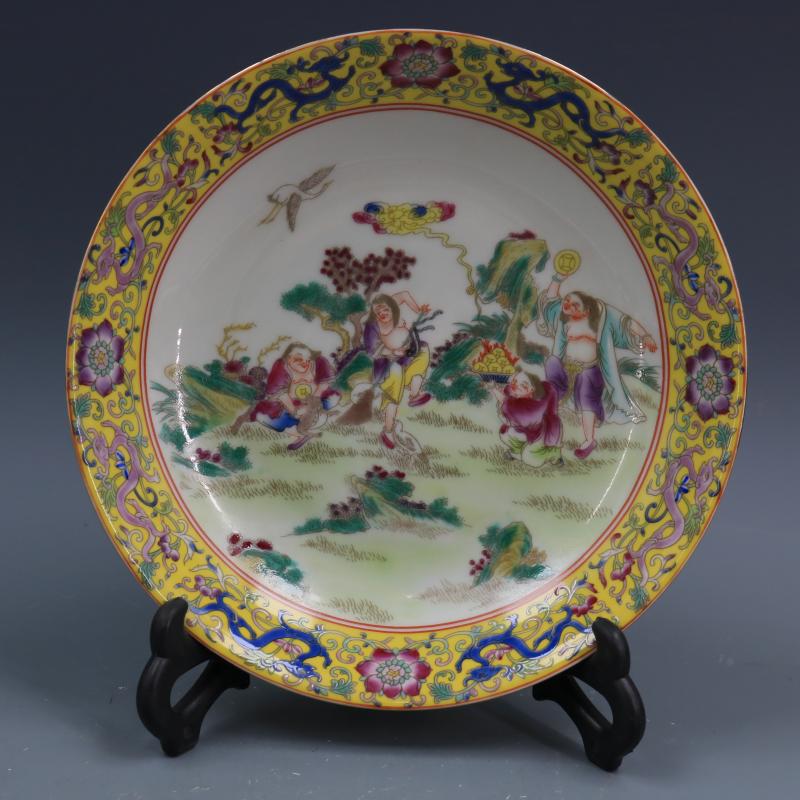 清雍正粉彩人物盤手繪仿古工藝品家居裝飾瓷器擺件古董古玩收藏1入