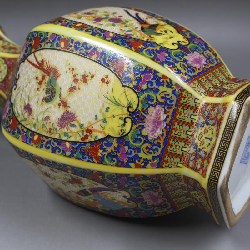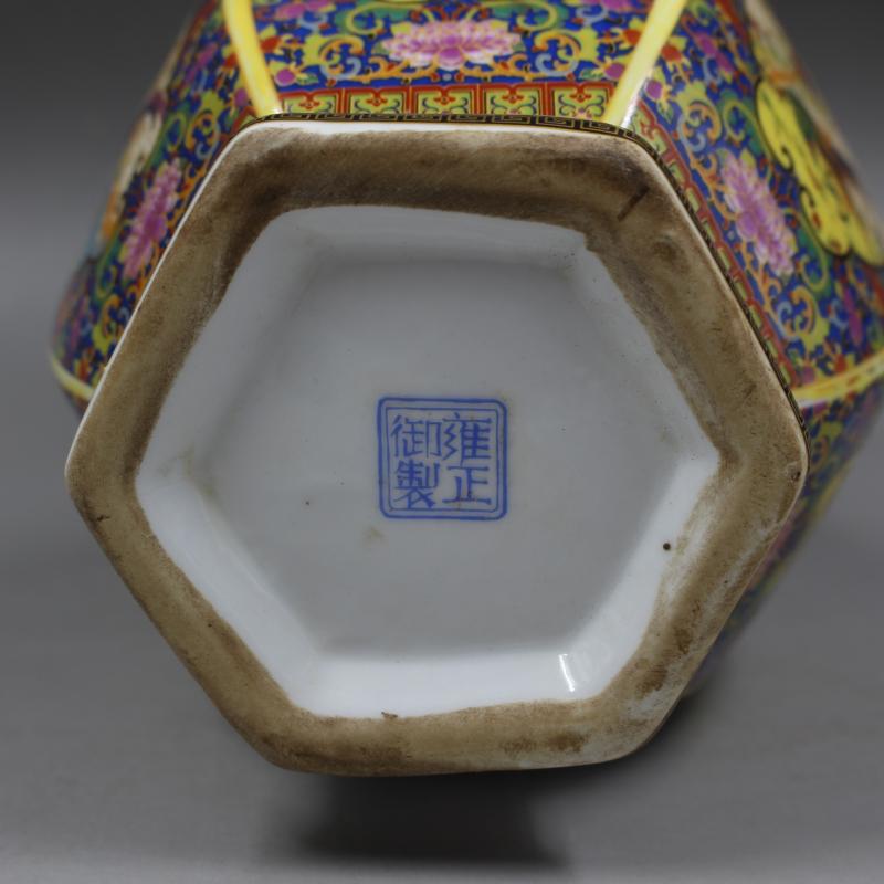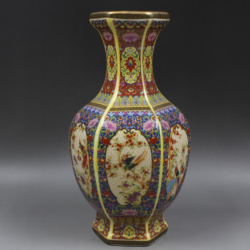 大清雍正年制琺瑯彩花鳥六方賞瓶仿古景德鎮官窯瓷器擺件古董古玩1入