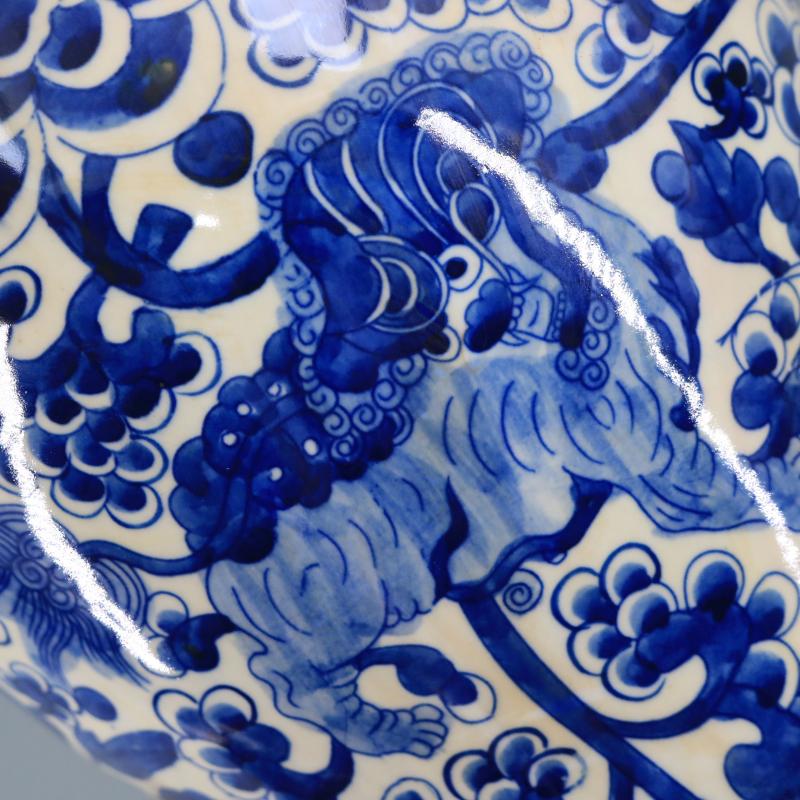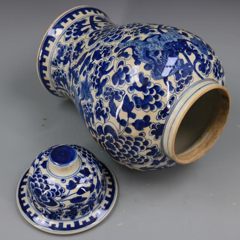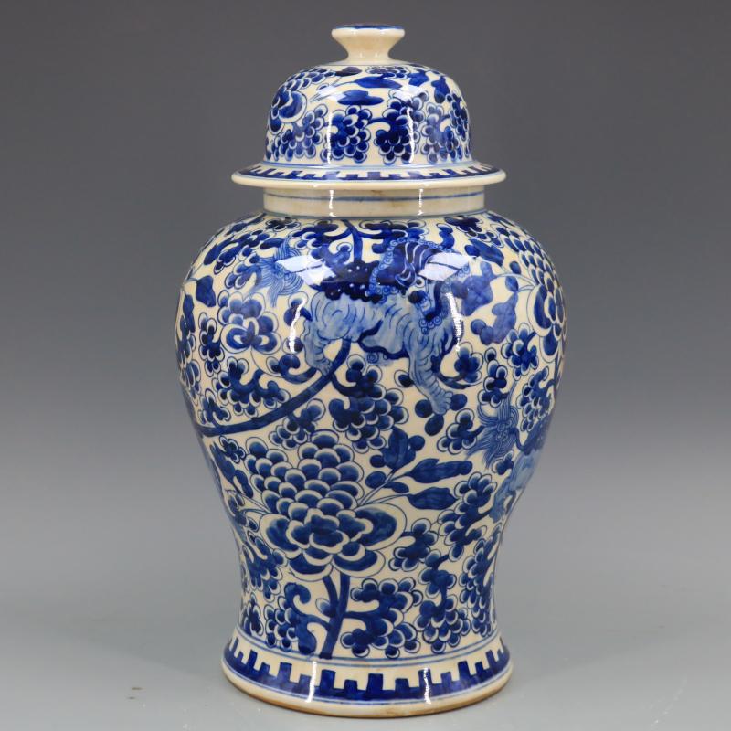 清康熙青花纏枝獅子紋將軍罐仿古工藝瓷器家居裝飾擺件古董古玩1入