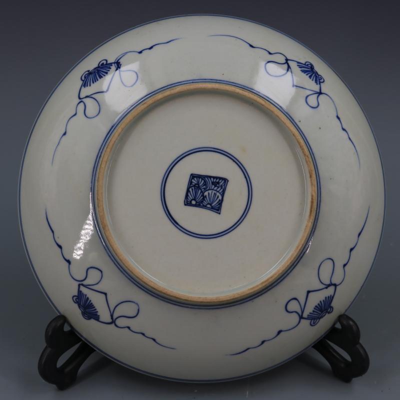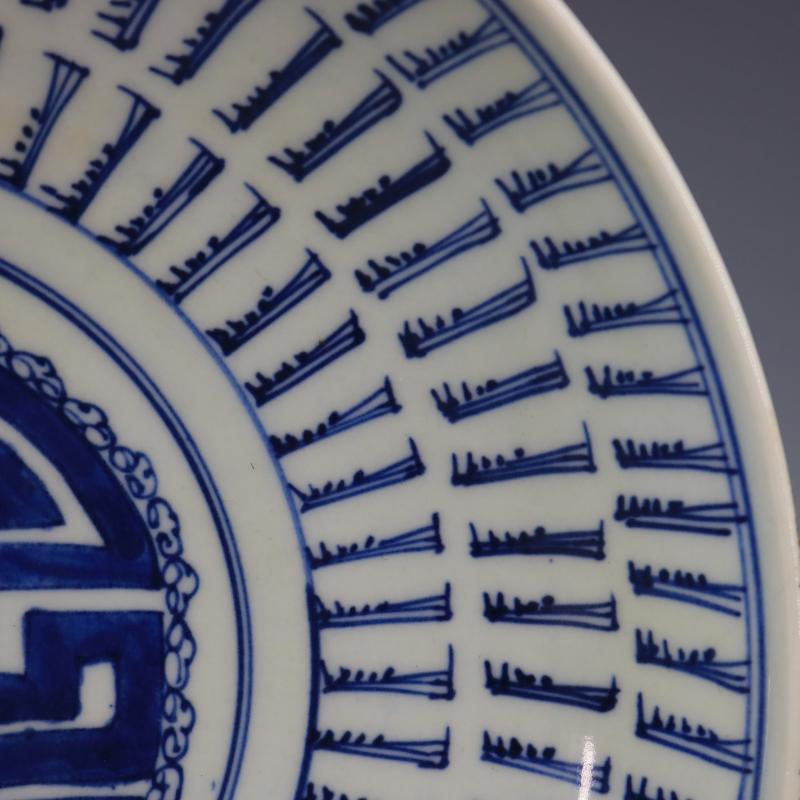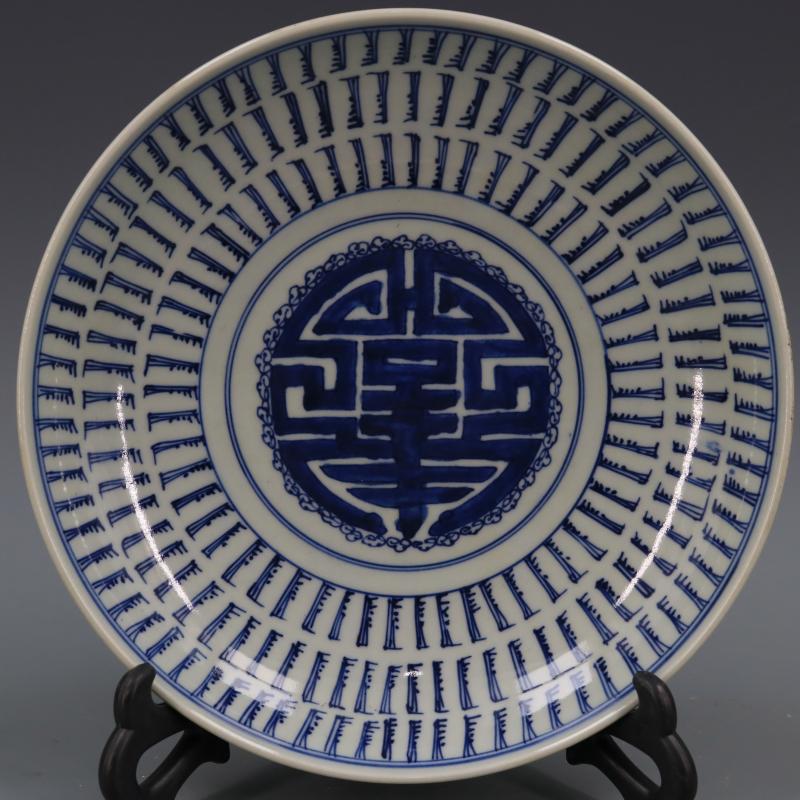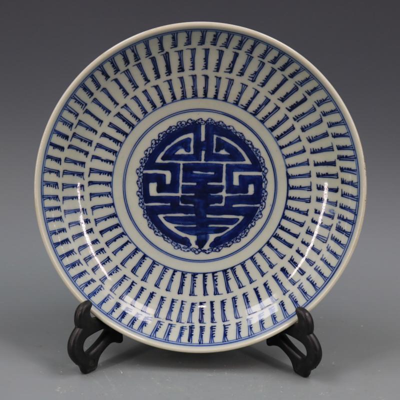 [3]清康熙青花萬壽紋盤手繪仿古老貨瓷器家居擺件古董古玩老貨收藏1入