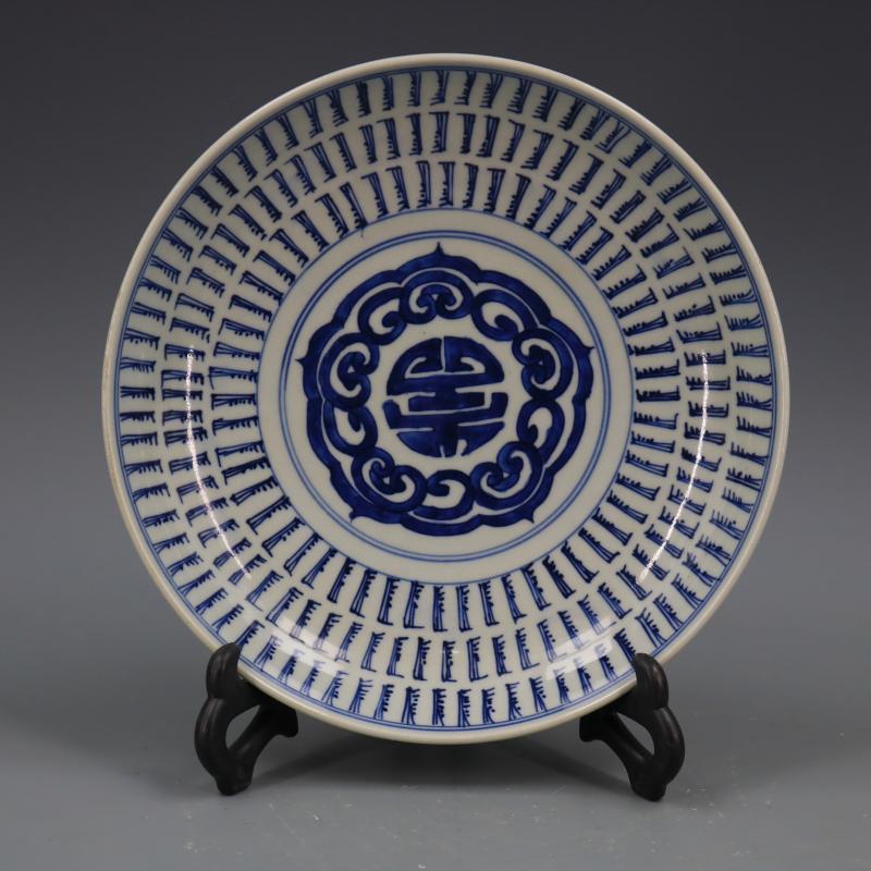 [2]清康熙青花萬壽紋盤手繪仿古老貨瓷器家居擺件古董古玩老貨收藏1入