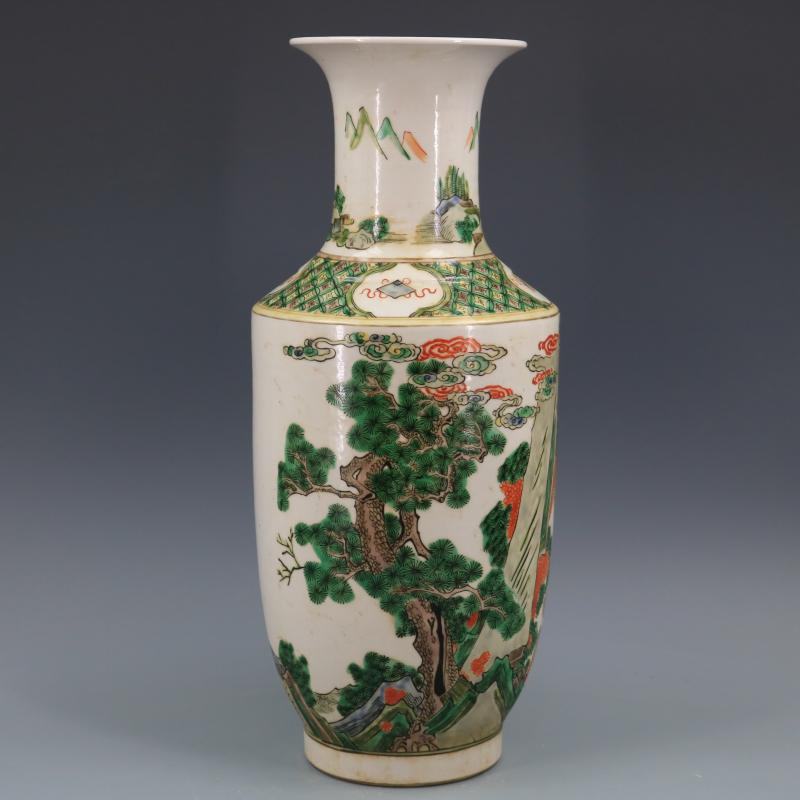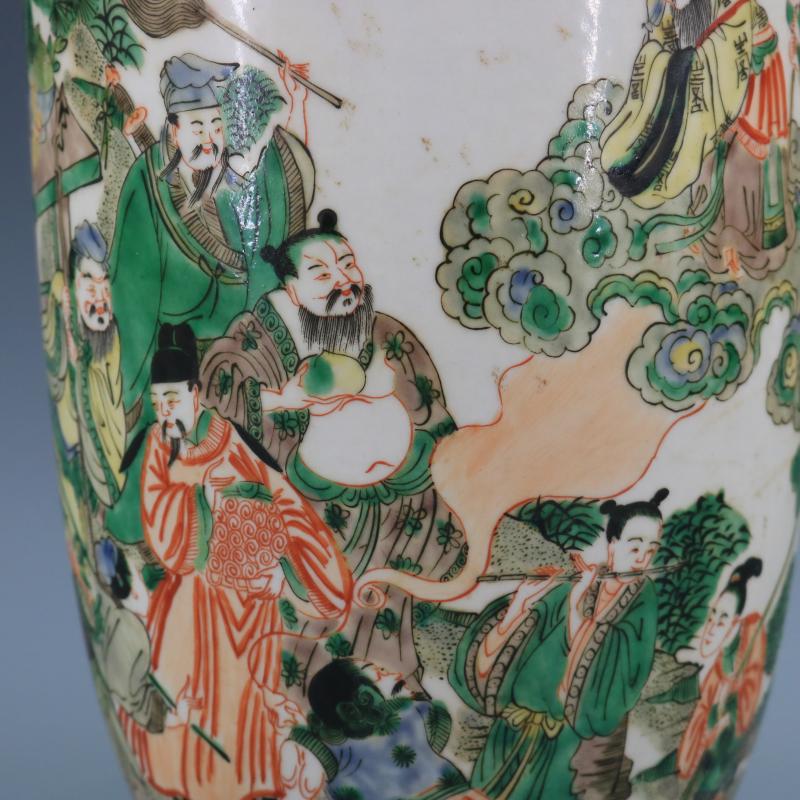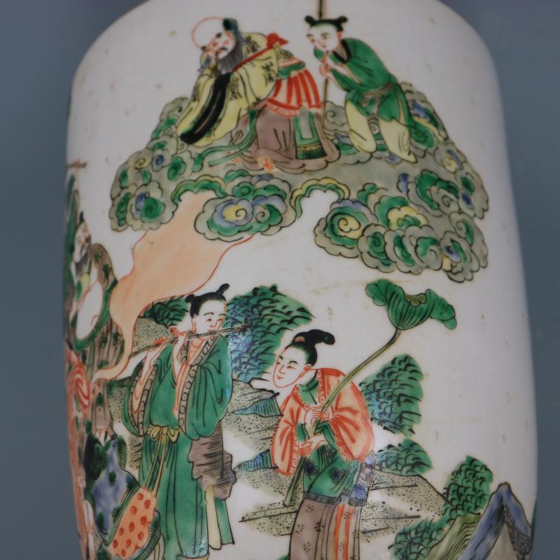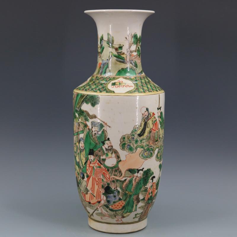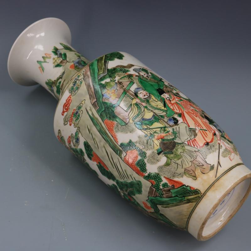 清康熙古彩人物方尖瓶手工仿古家居裝飾品瓷器擺件古董古玩收藏1入