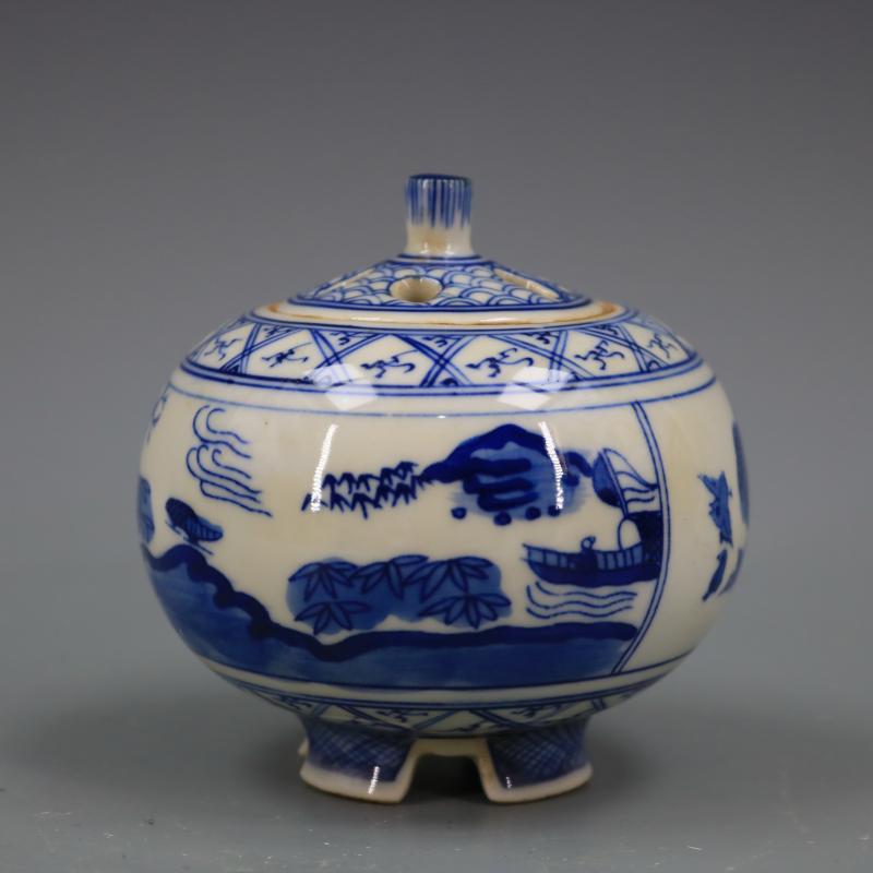 清康熙青花花鳥香熏爐手繪仿古工藝品瓷器家居擺件古董古玩收藏1入